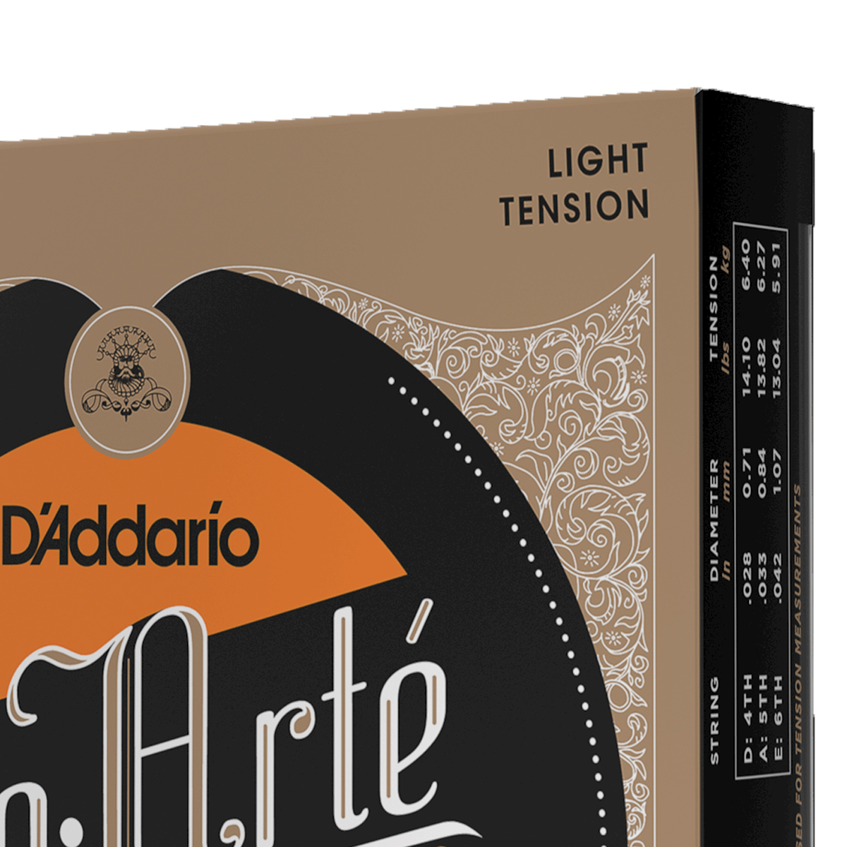 Arraigado en generaciones de experiencia en la fabricación de cuerdas de D’Addario, Pro-Arte’ Nylon es nuestro conjunto clásico arquetípico. Las cuerdas del bajo están hechas con un núcleo de nailon multifilamento y entorchadas con cobre plateado, para una respuesta excepcionalmente cálida y consistente. Junto con cuerdas agudas de nailon transparente, que ofrecen agudos dulces y suaves, el nailon de Pro-Arte te brinda el sonido y la sensación que han llegado a definir la guitarra clásica. Estas cuerdas de tensión ligera son ideales para principiantes o jugadores experimentados con un toque ligero.