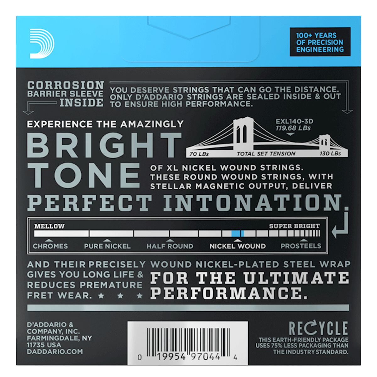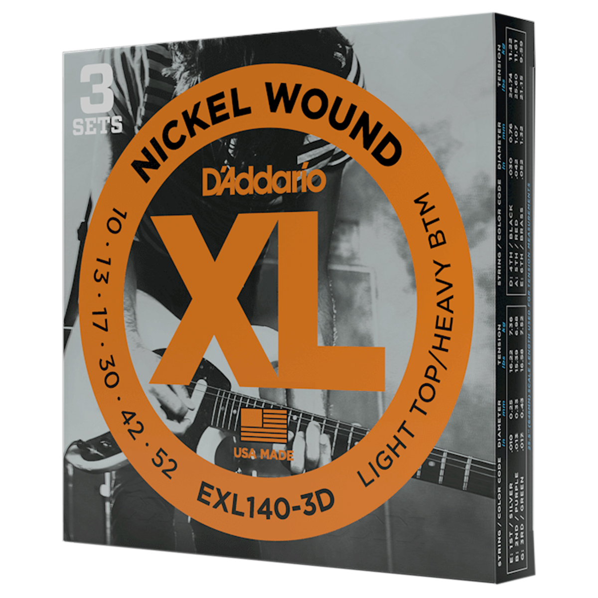 Juego de 3 cuerdas para guitarra eléctrica con parte superior ligera/parte inferior pesadaEXL140-3D