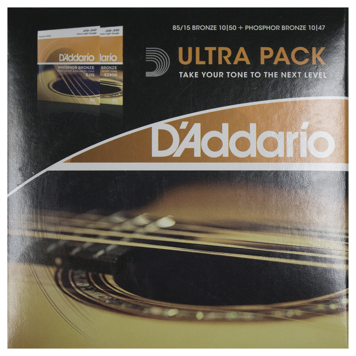 Entorchado de Bronce 85/15: Esta aleación del material de entorchado consiste en 85% cobre y 15% estaño lo que les da un sonido brillante pero profundo y un gran tacto al tocar además de gran versatilidad. Con su tecnología de vanguardia, las cuerdas D’Addario son entorchadas a la perfección garantizando un sonido potente y estable además de una afinación duradera.Núcleo hexagonal de acero al alto carbón: Este material ofrece además de alta resistencia y durabilidad, un sonido cristalino con mucha proyección, sustain y gran conservación de la afinación.Tensión extra-ligera: Ideal para principiantes o músicos que gustan de hacer bendings y un sonido más suave.Paquete ecológico y resistente a la corrosión para conservar la frescura de las cuerdas.Fabricadas en USA.Calibres: Acero liso .010, .014 y Entorchado en bronce .022, .030, .040, .050.