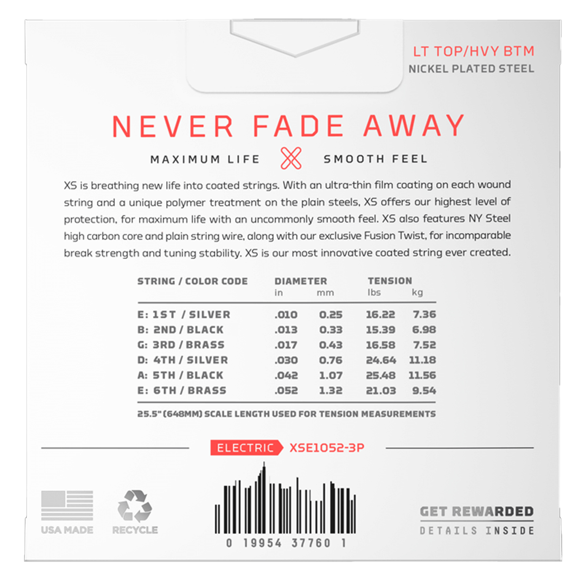 Cuerdas para guitarra eléctrica con revestimiento superior ligero/inferior pesado, paquete de 3. XSE1052-3P