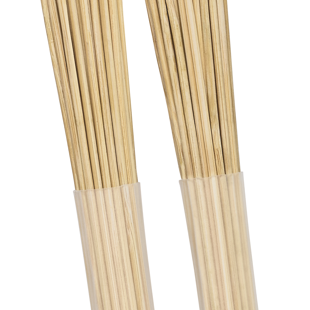 Al usar clavijas de bambú en lugar de alambres, hemos creado un tipo único de escobilla. Los bateristas pueden usar la forma de abanico en patrones de barrido u obtener un ritmo de fondo completo y grueso de su tarola y los percusionistas pueden usarlos en todo tipo de instrumentos y efectos.