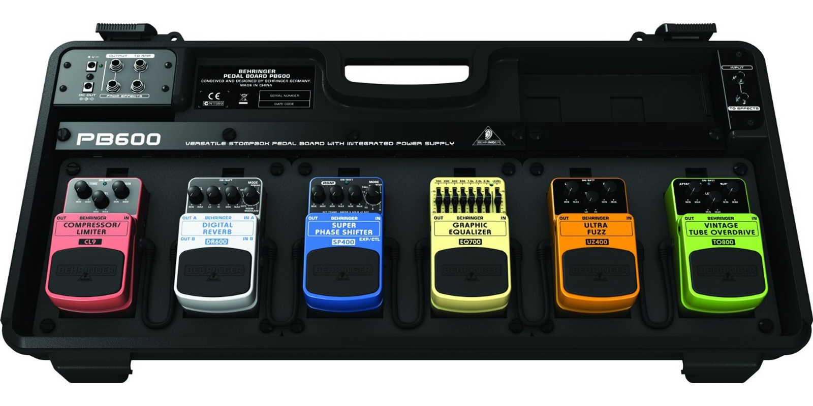 Pedalera universal con fuente de alimentación integrada, transporta hasta 6 pedales de efectos, incluye todo el cableado y un adaptador de corriente de 1,7 A,diseño de plástico ultra rígido que soporta incluso impactos fuertes.