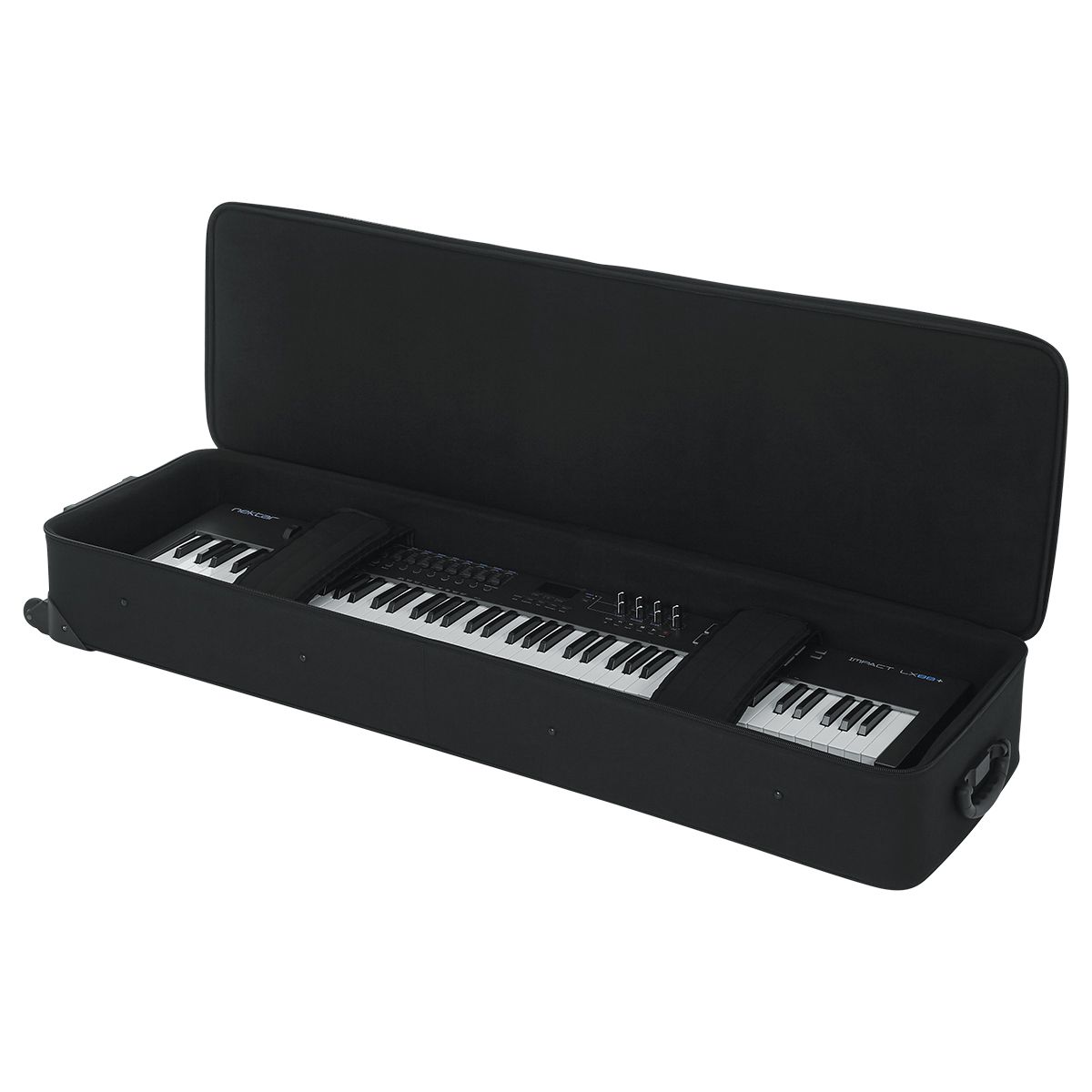 - Ruedas integradas con manija de remolque y barras deslizantes.