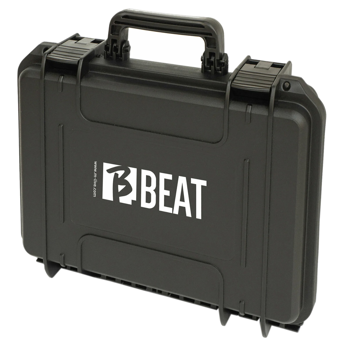 Estuche de polipropileno negro ligero y resistente para el B.BEAT. Las inserciones internas de espuma de forma perfecta ofrecen la mejor protección y La mejor forma de transportar tu B.Beat de un escenario a otro, construido y diseñado con bisagras de polipropileno de larga duración y mango práctico para un excelente agarre y comodidad con un tamaño compacto y máxima resistencia al impacto.