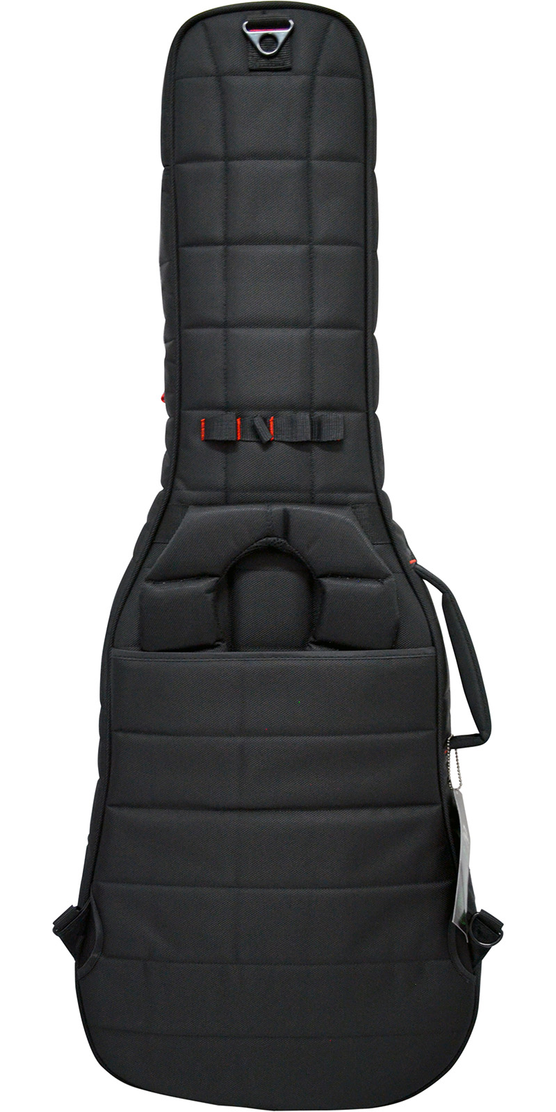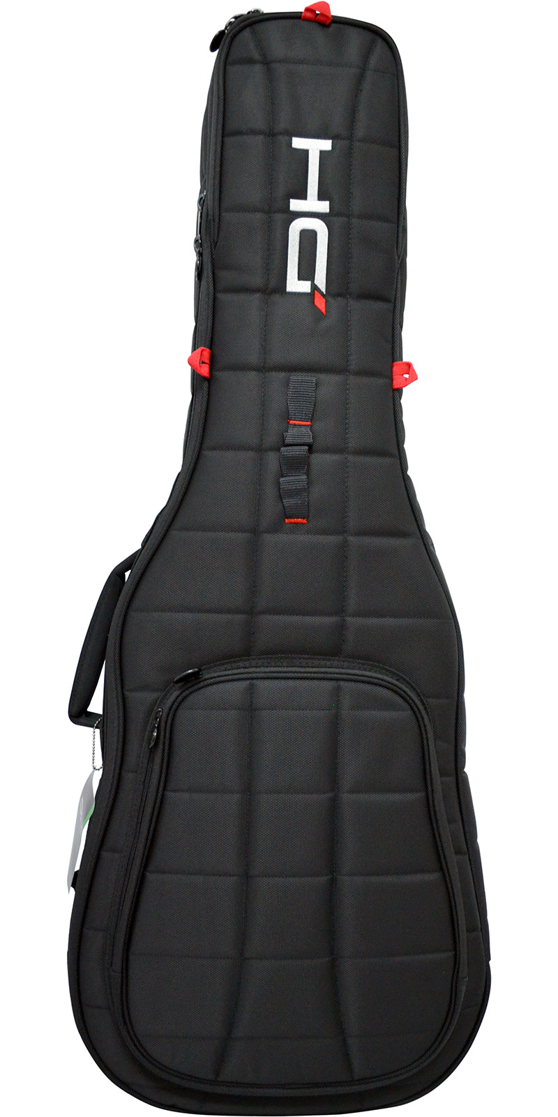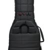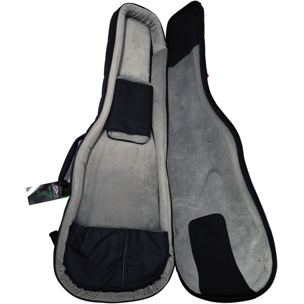 Estuche profesional para guitarra eléctrica, fabricado con poliéster 1680D a prueba de agua, color negro, serie ARMOR, diseñado para ofrecer la máxima protección y satisfacer todas las necesidades de los guitarristas modernos, proporcionado con acolchado DHFOAM® de 35 mm y un forro interior total hecho de terciopelo gris suave, equipados con un reposacabezas fijo con velcro y una inserción acolchada ajustable en la base para un posicionamiento óptimo del instrumento, cierres reforzados de aluminio fundido.