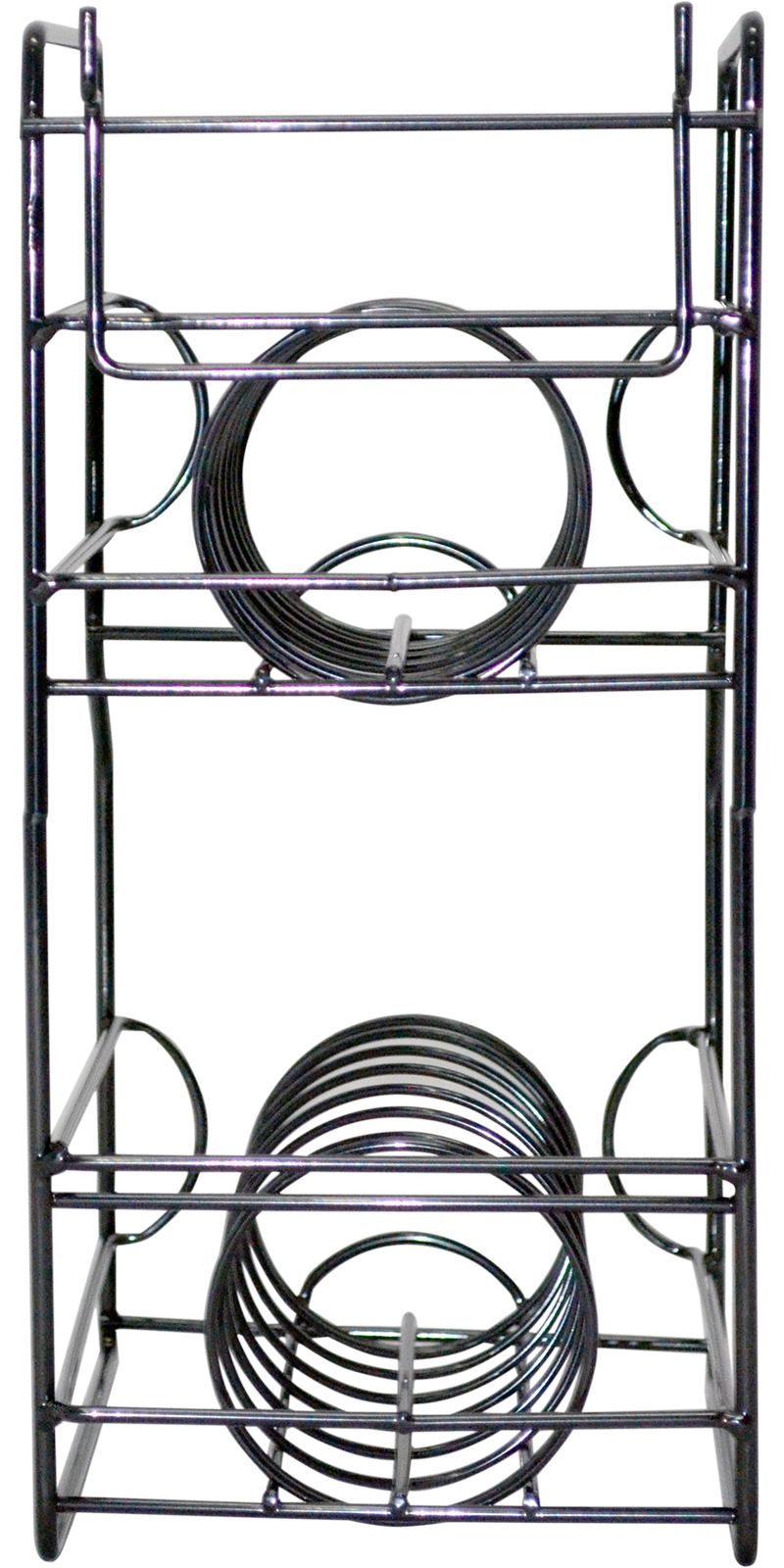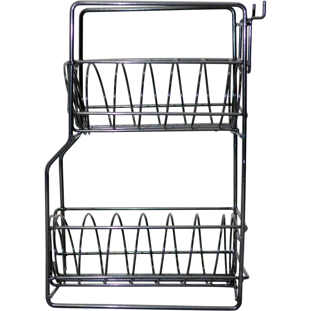 Exhibidor dispensador para encordaduras de guitarra, fabricado con alambre de acero, con resorte metálico y logotipo en plástico, 2 niveles, ideal para slatwall o mostrador, dimensiones: 18 x 13 x 28 cm