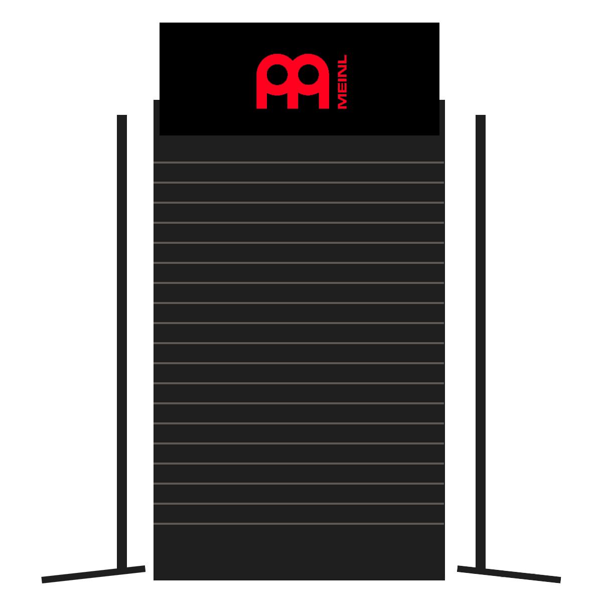 Exhibidor Meinl, contiene un slatwall, panel con logotipo de Meinl, truss y patas.Medidas: 120 cm de ancho y 240 cm de largo.