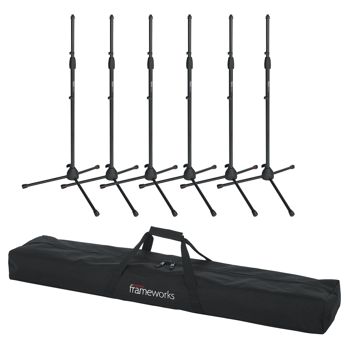 - Funda de transporte ligera y protectora para hasta 6 soportes de micrófono.
