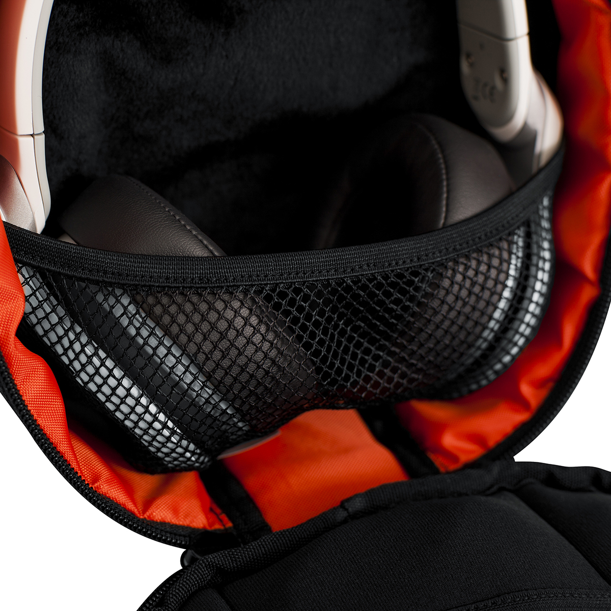 - Compartimento acolchado con forro de terciopelo con gancho hook & loop y banda elástica.
