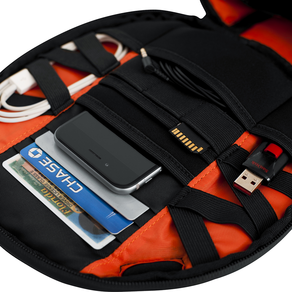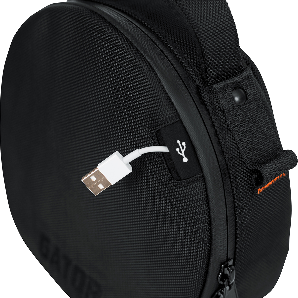 - Ojal USB en la parte delantera de la funda para cables de alimentación a dispositivos del interior.