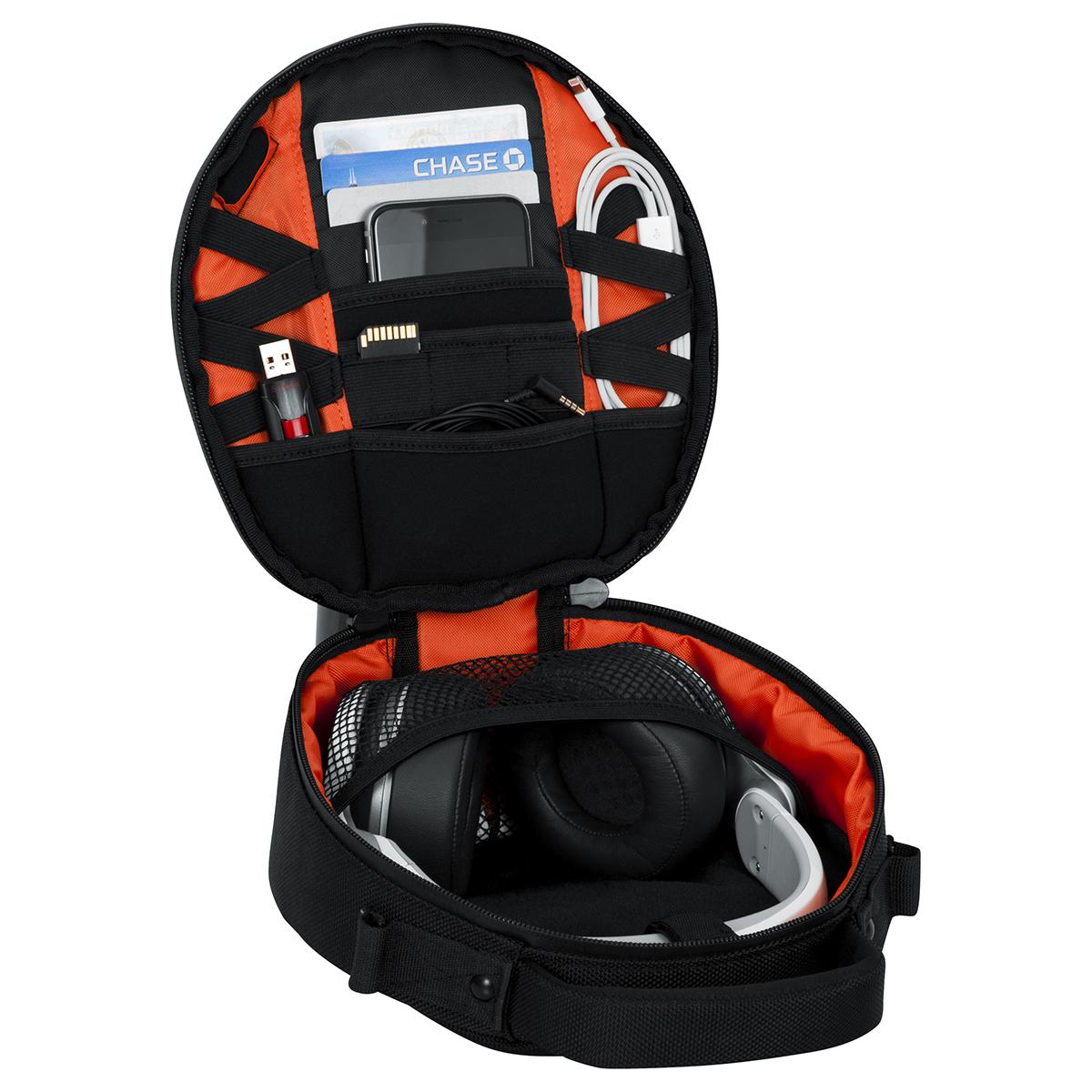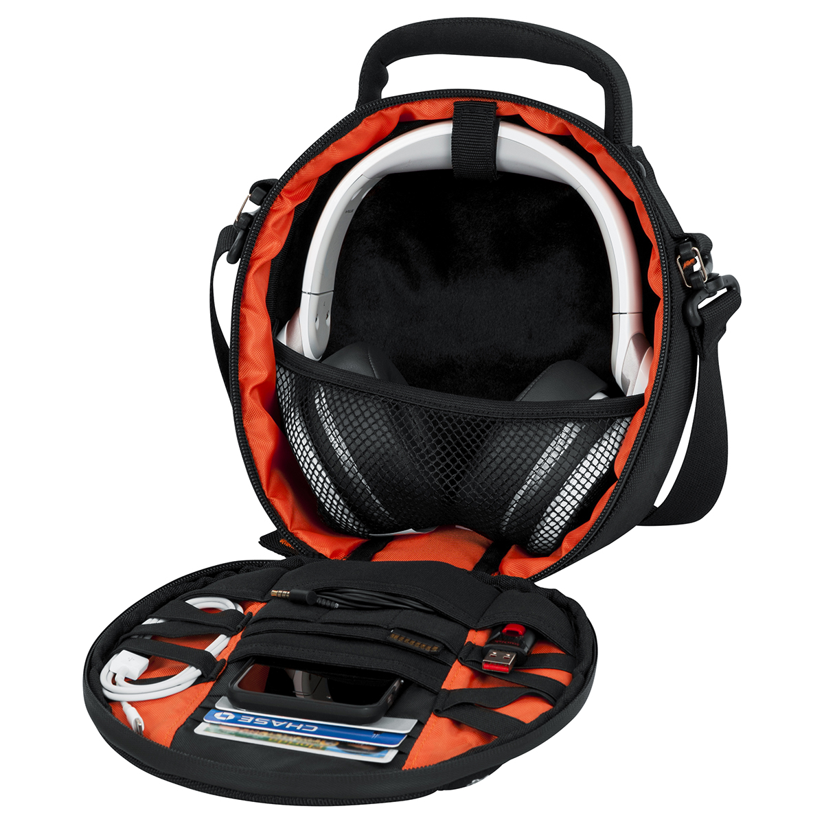 - Bolsa de transporte compacta de nylon resistente para audífonos estilo DJ.