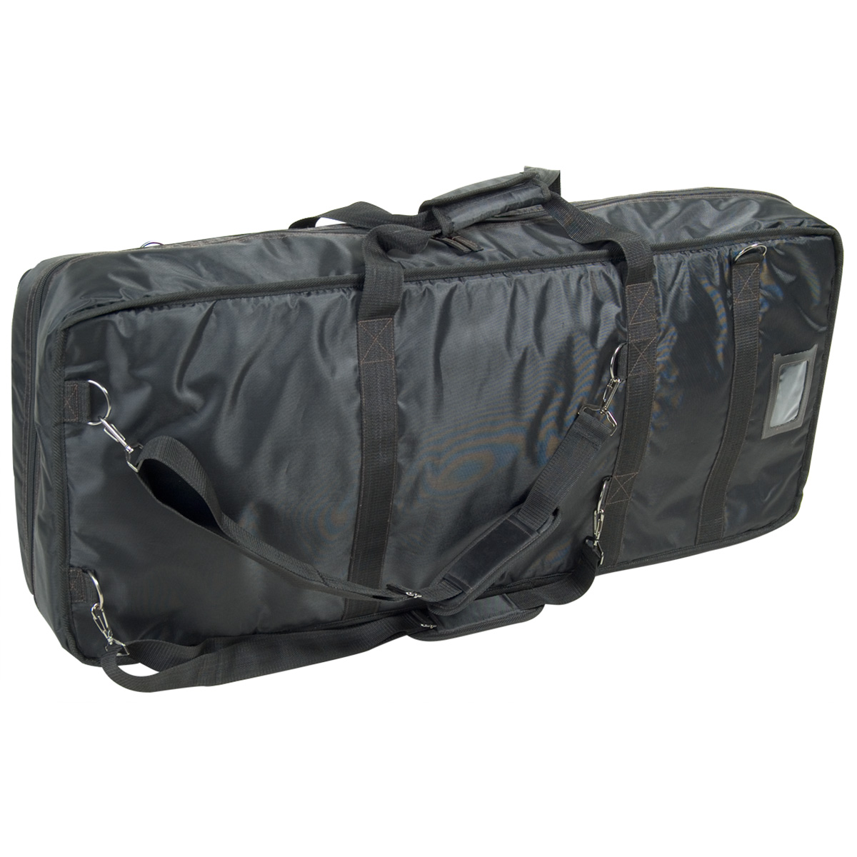Asas de velcro, manijas fortalecidas y correas de hombro ajustables y acolchadas que se fijan a la funda con anillos de resistente metal.