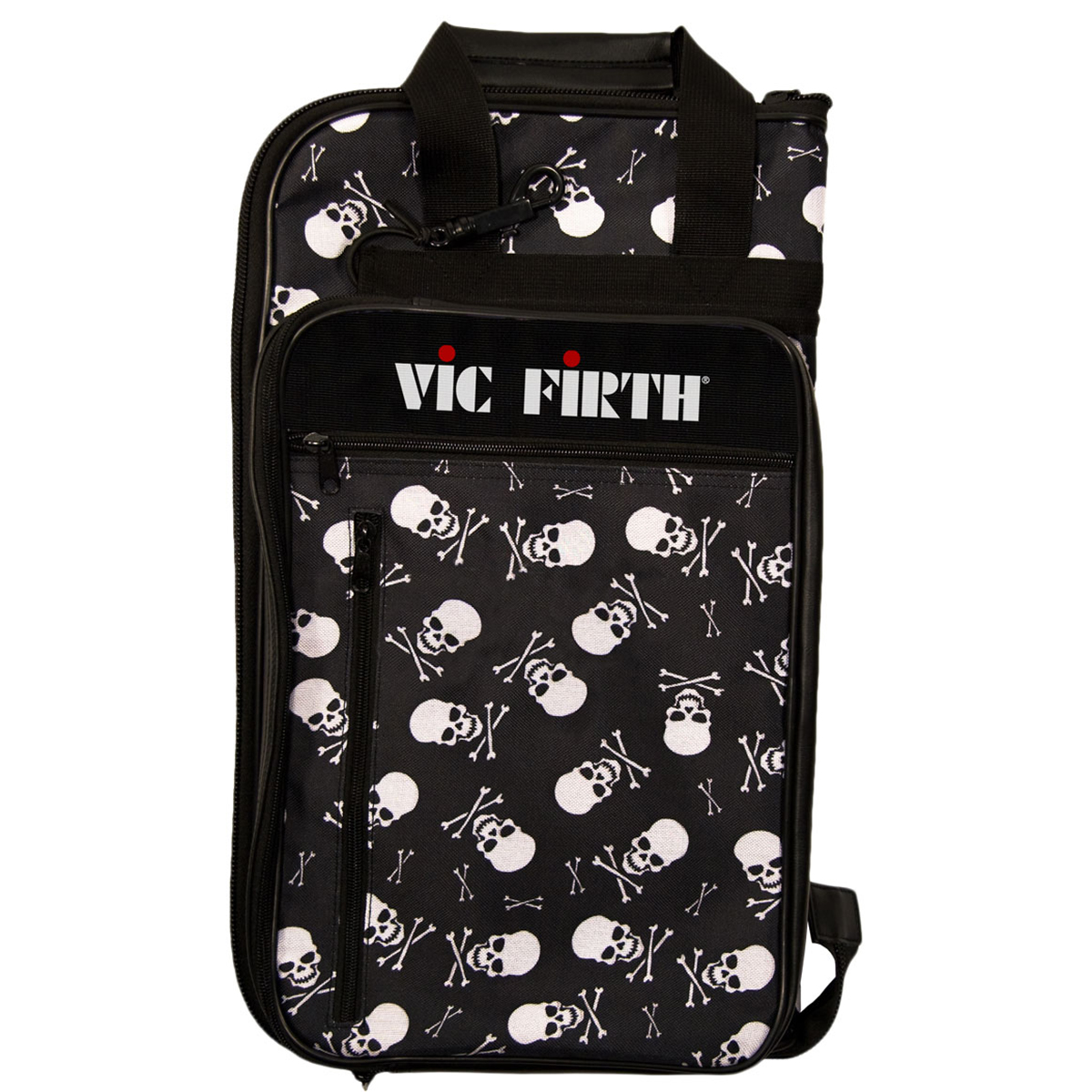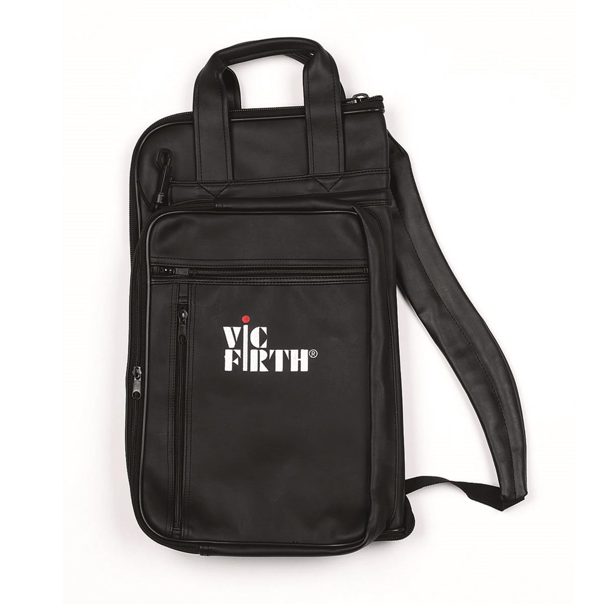 Contiene tres bolsillos interiores con 12 pares de baquetas y otra exterior para accesorios pequeños.