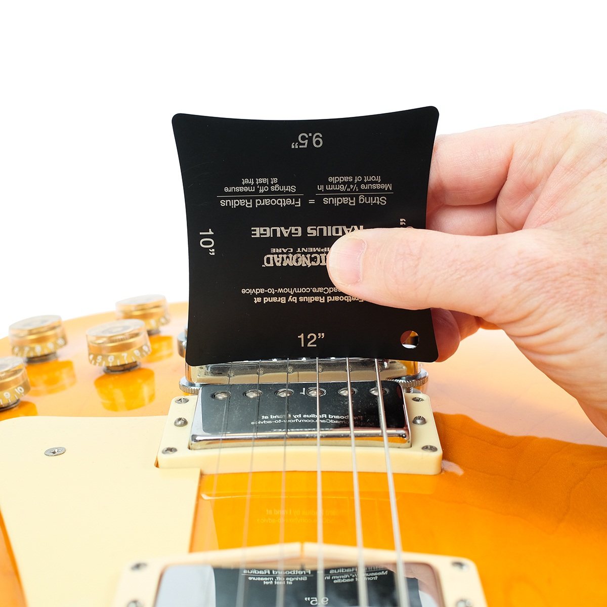 Mide el radio del diapasón y el radio de las cuerdas en guitarras eléctricas, acústicas y bajos.