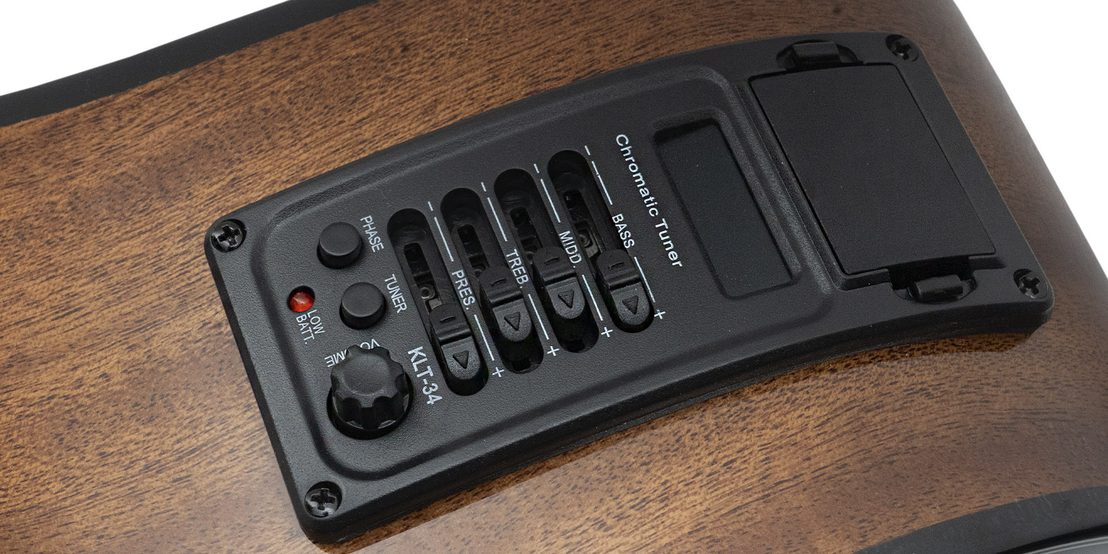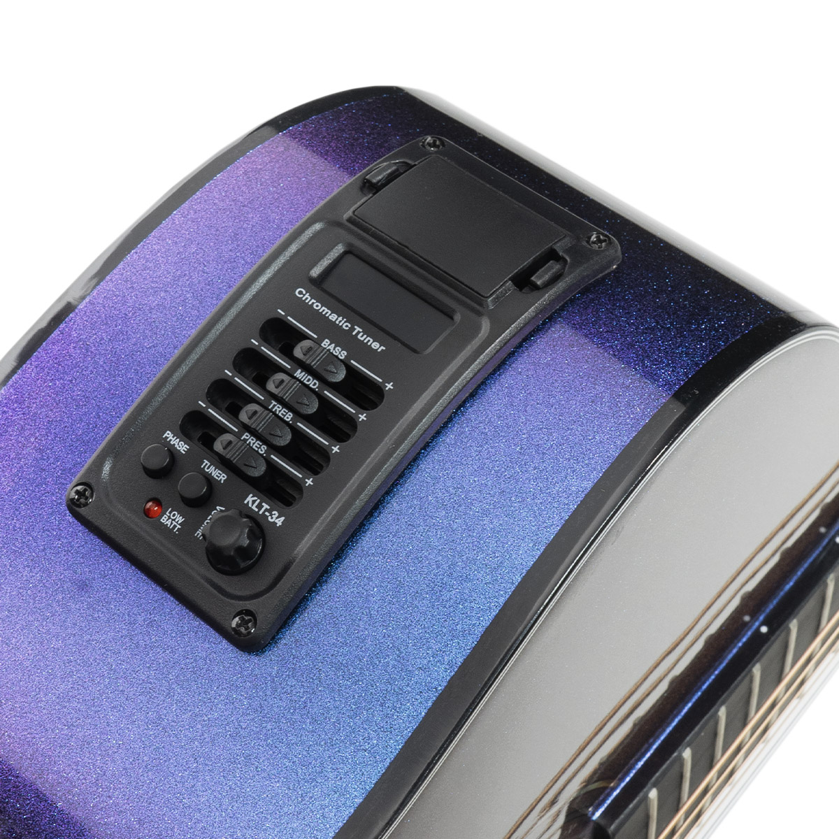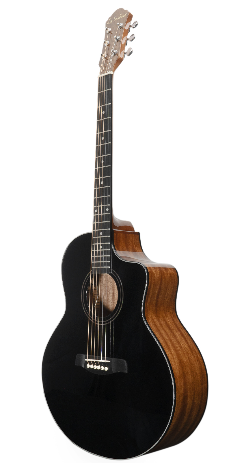 La guitarra electroacústica La Sevillana GA-321CEQ presenta un diseño Grand Auditorium en color negro, equipada con un preamplificador KLT-34 de 4 bandas, con conectividad a través de un jack de 1/4 de pulgada. Cuenta con un cuerpo de sonokeling, tapa de abeto en color negro, diapasón estándar con 20 trastes, y está diseñada para proporcionar un sonido claro y brillante, siendo ideal para músicos de todos los niveles.