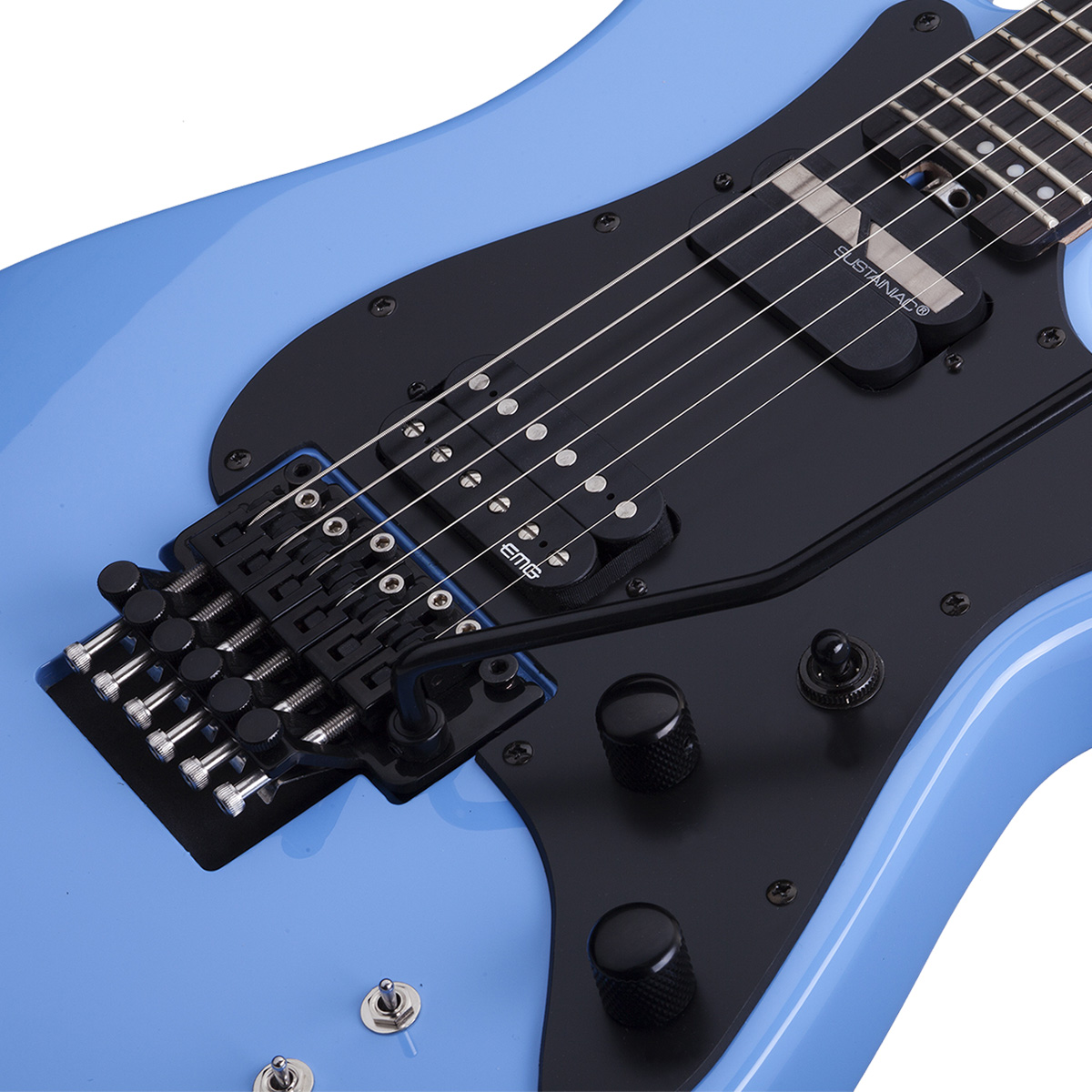 Dos volúmenes, switch de 3 posiciones (pastillas), switch de 2 posiciones (Sustainiac On-Off), switch Sustainiac de 3 posiciones (Fundamental-Mix-Harmonic).
