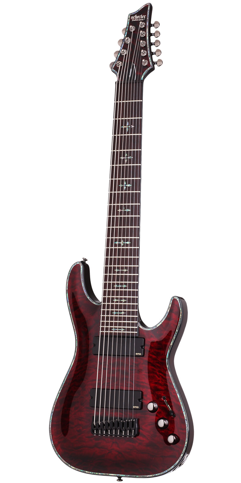 Guitarra eléctrica sólida de 9 cuerdas.