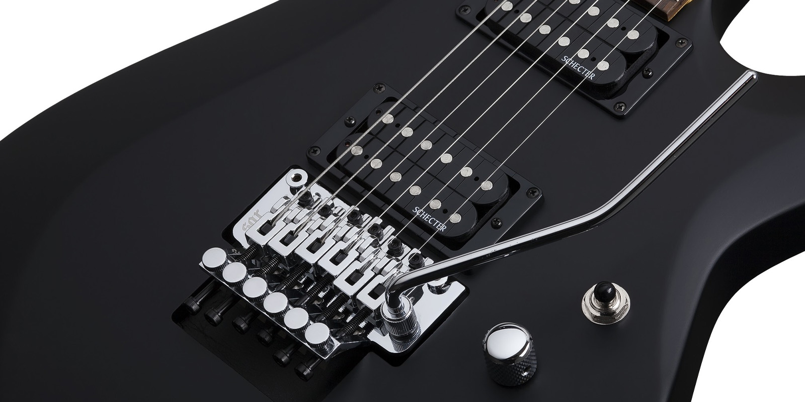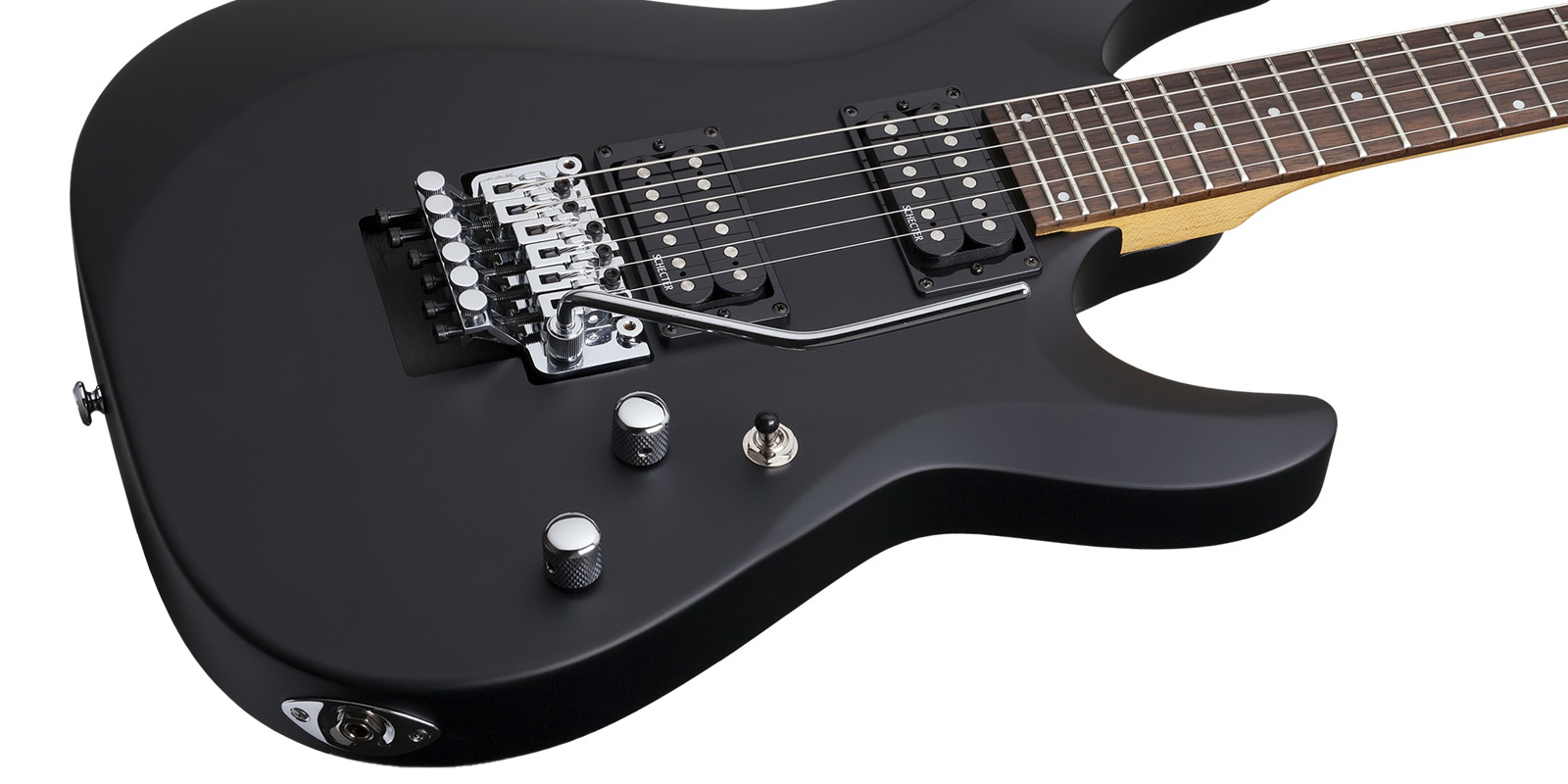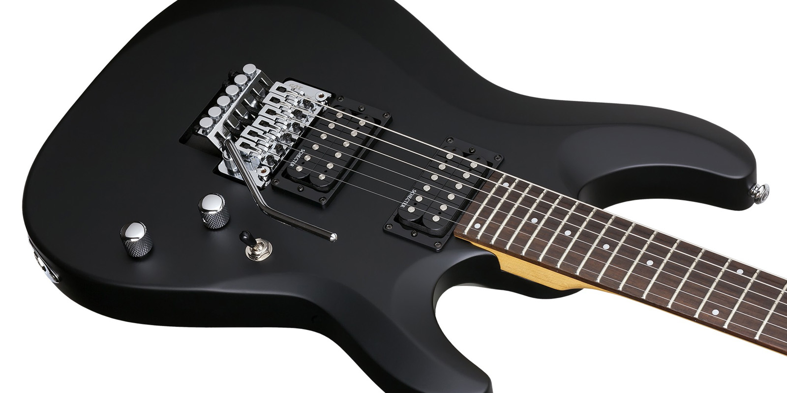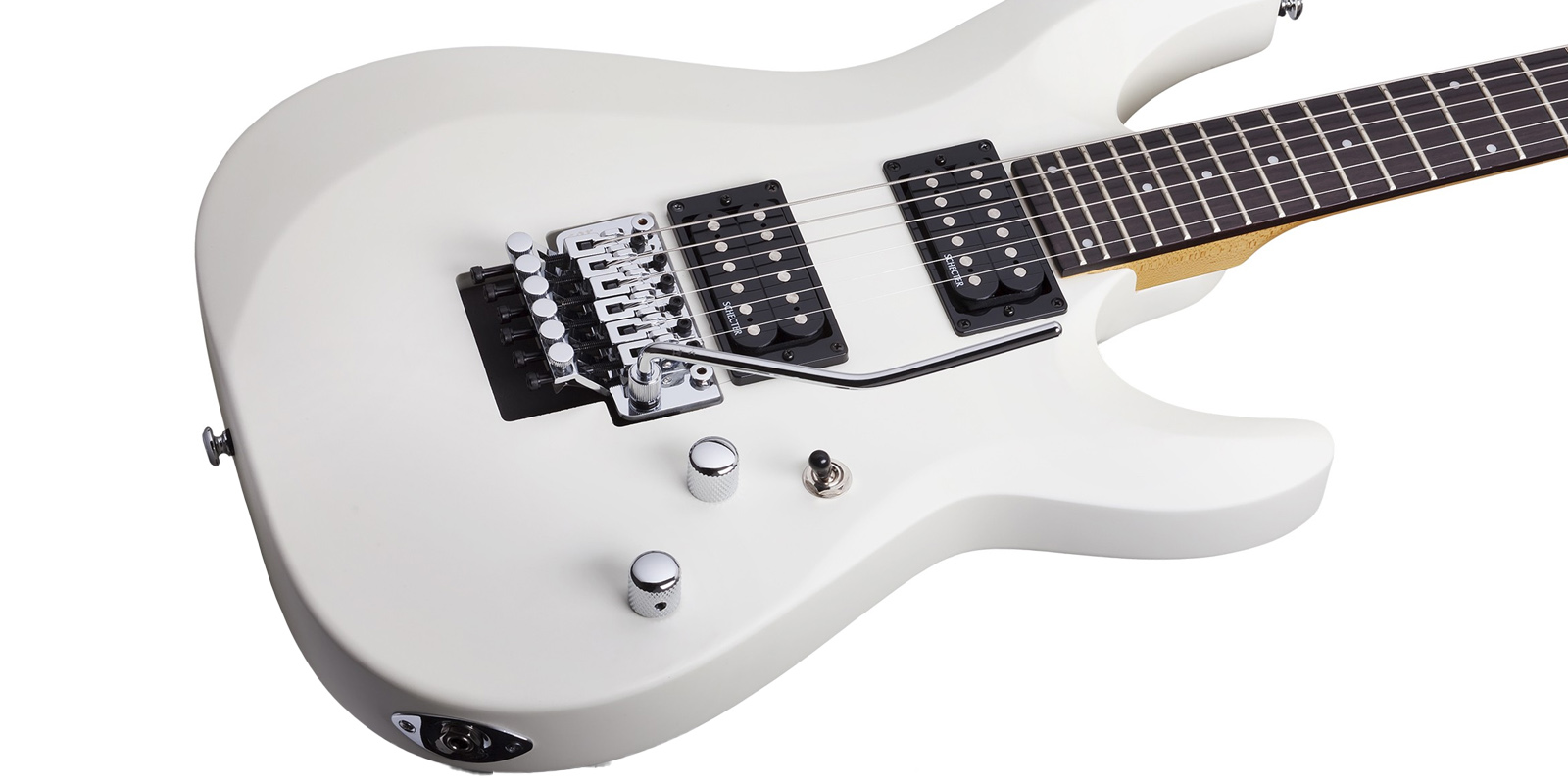 Guitarra Eléctrica SCHECTER C-6 FR DELUXE, sólida, construida con cuerpo de tilo, tapa plana con borde biselado, construcción Bolt on con puente SGR by Floyd Rose, brazo C delgado de maple, diapasón de palo de rosa e incrustaciones de puntos de 4 mm, escala: 25.5” (648 mm), 24 trastes Narrow X-Jumbo, cejuela SGR by Floyd Rose, maquinaria Schecter, alma ajustable de 2 vías, pastilla del puente: Schecter Diamond Plus, pastilla del brazo: Schecter Diamond Plus, controles: Volumen / Tono / Selector de 3 posiciones, hardware cromado, perillas de metal moleteado con tornillo de fijación.
