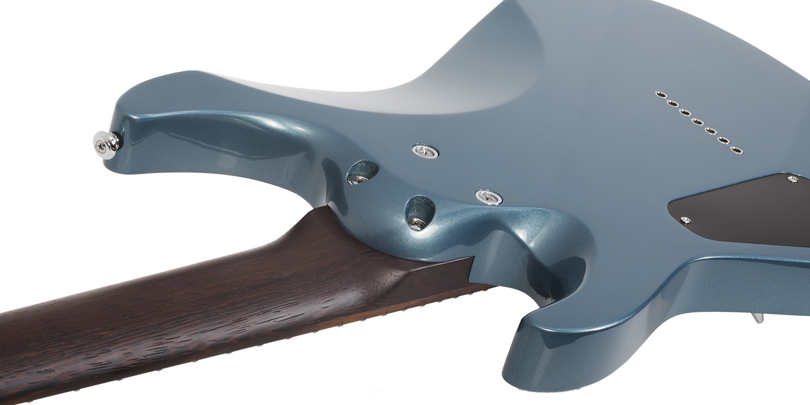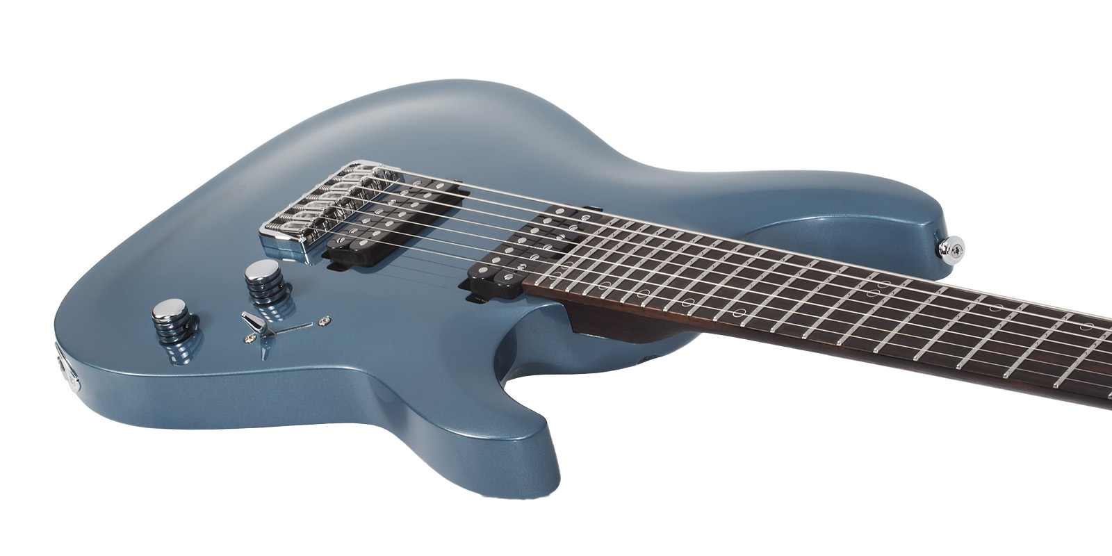 Guitarra eléctrica SCHECTER AARON MARSHALL AM-7 es una guitarra construida con cuerpo ligero de tilo, mástil de wengué aserrado en un cuarto en un perfil delgado en ”C” de juego rápido. Magnífico diapasón de ébano de Macassar con 24 trastes jumbo de acero inoxidable son altamente resistentes al desgaste del juego. Cuenta con radio de 16 pulgadas facilita el juego en todo el tablero. Los humbuckers Schecter USA Solstice y Equinox cubren sin esfuerzo desde tonos bajos hasta tonos limpios y atmosféricos. El puente fijo Hipshot de 7 cuerdas y los afinadores Hipshot Grip Lock conservan la estabilidad de afinación.