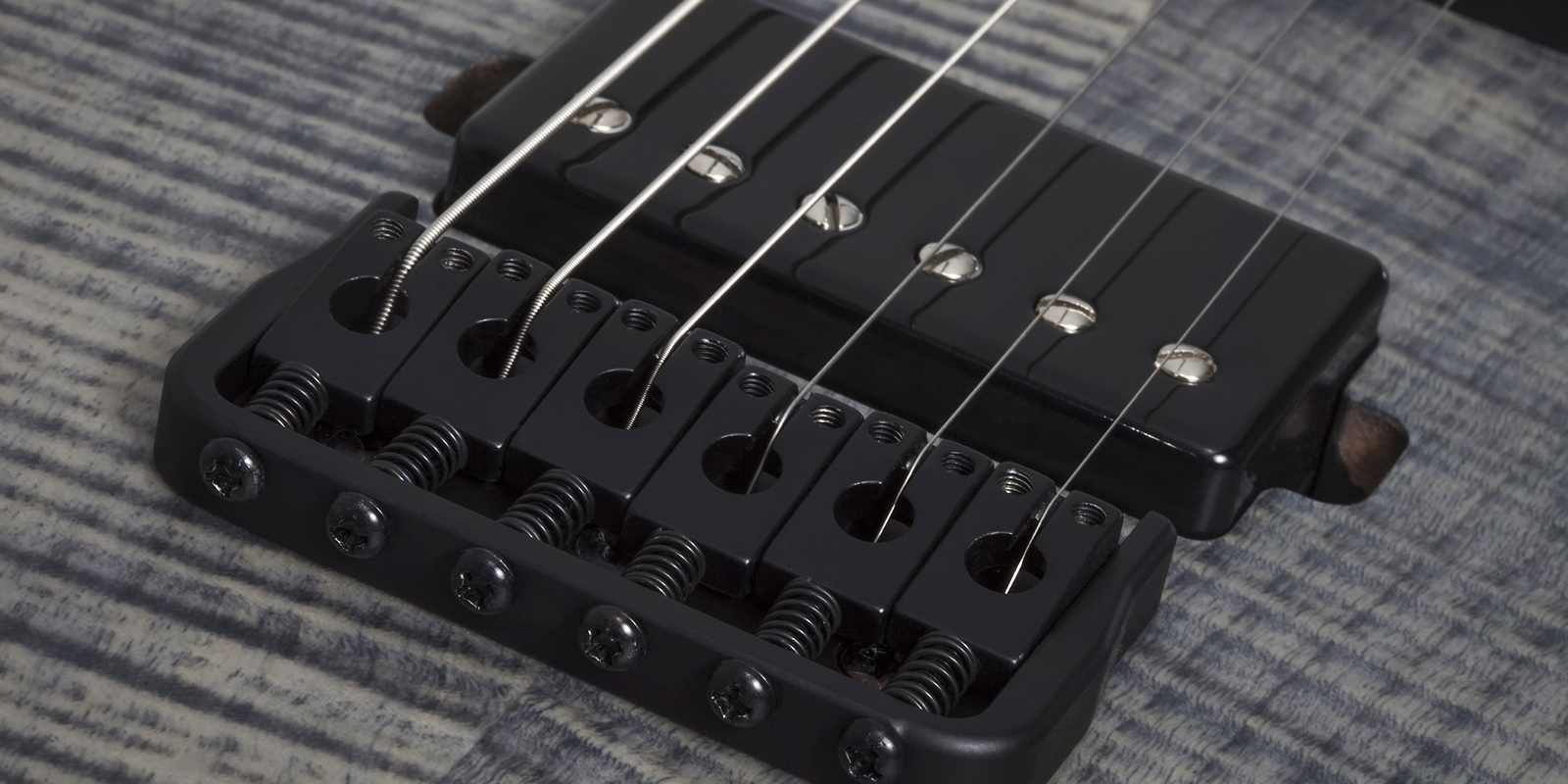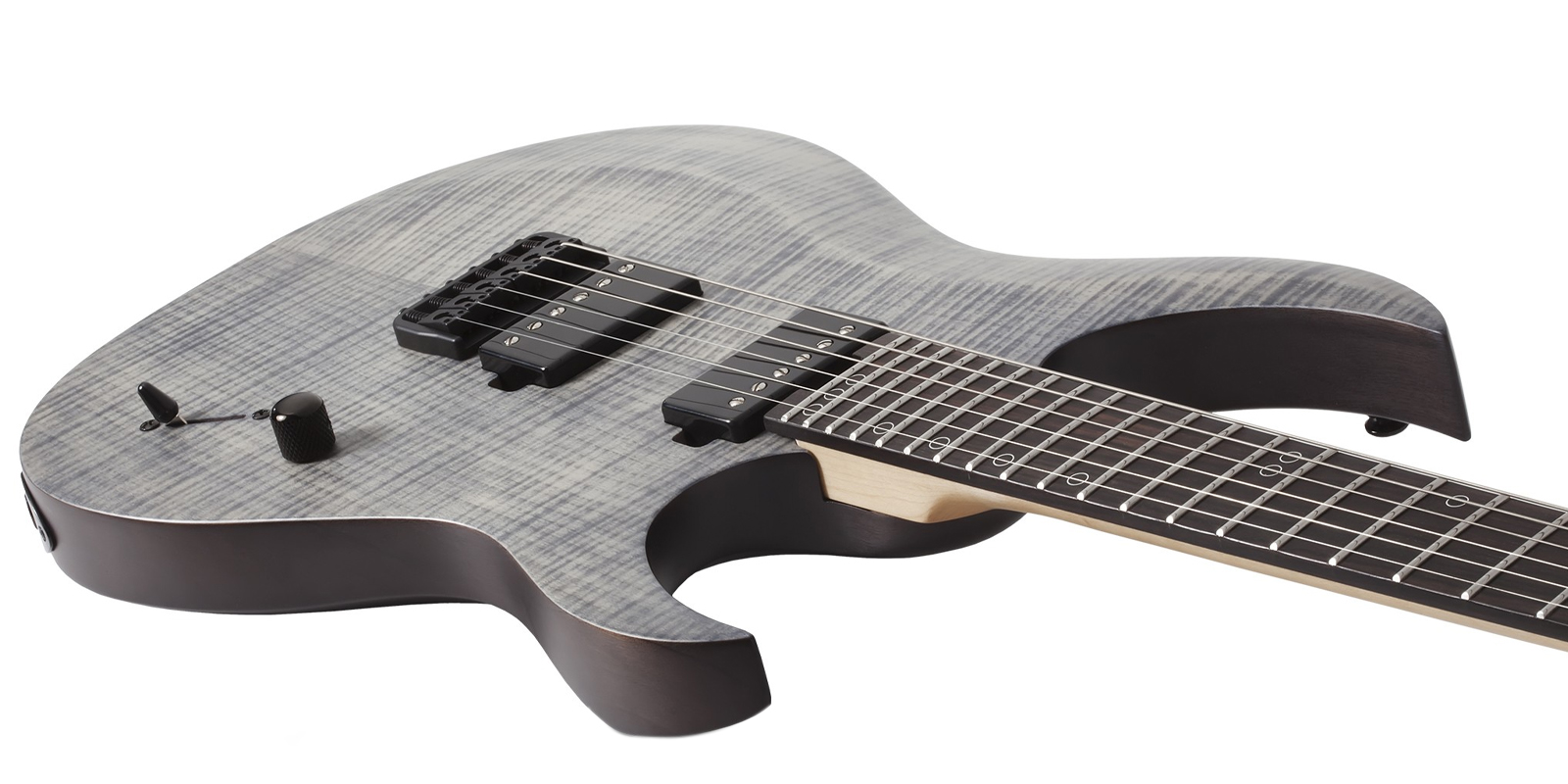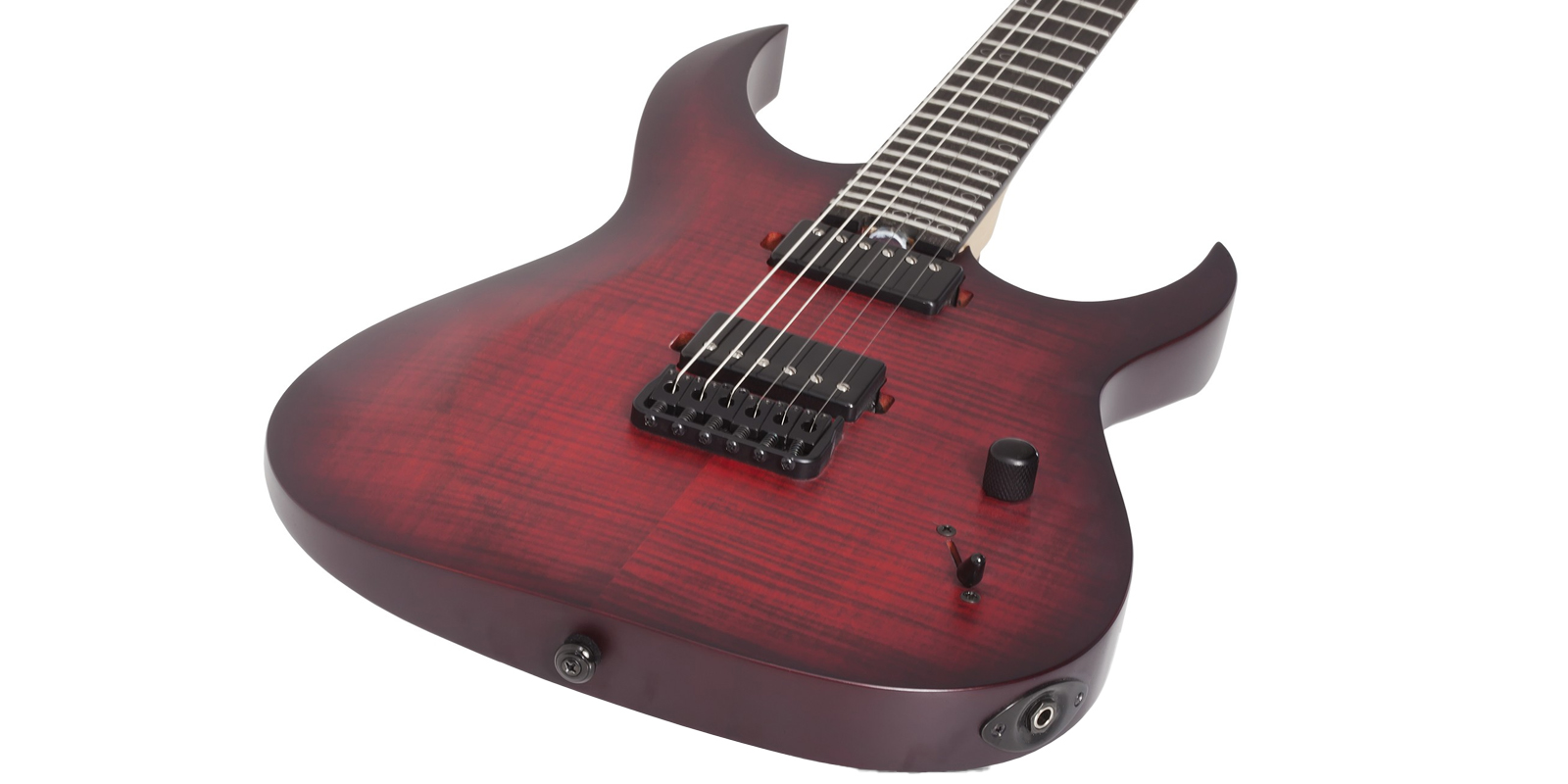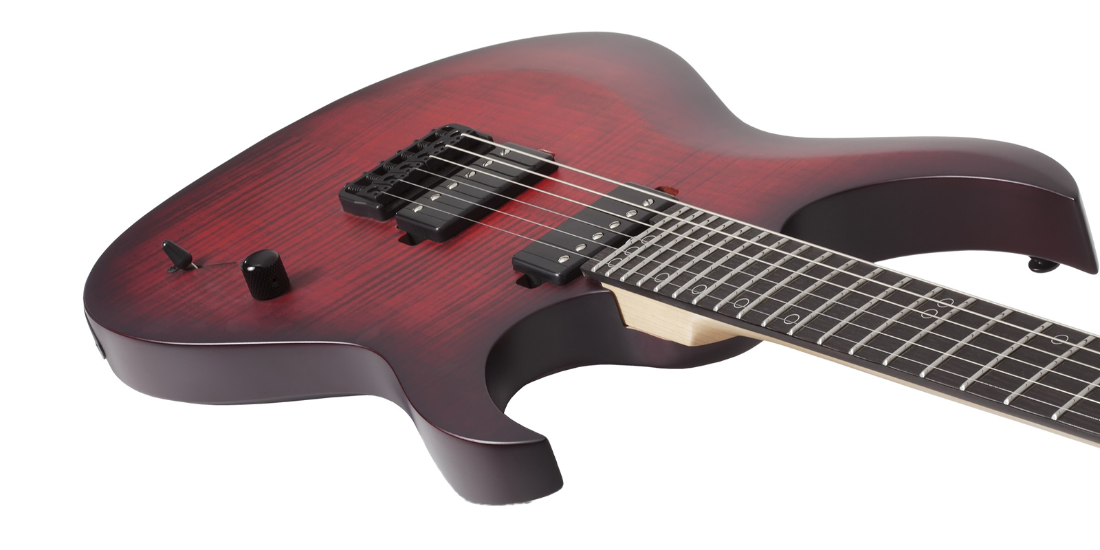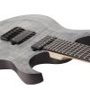 Guitarra Schecter Sunset-6 Extreme construida con cuerpo Nyatoh, mástil de arce y palisandro, diapasón de ébano con diseño de cuello de múltiples capas y perfil del mástil en forma de ”C” ultradelgado y 24 trastes XJ. Escala de 25,5 pulgadas y el radio del diapasón de 16 pulgadas, humbuckers Schecter USA, incluyen un Sunset Strip en el puente y Pasadena en el mástil, diseño de bobina dividida se acompaña de una perilla de volumen única y un selector de 5 posiciones y clavijeros de bloqueo Schecter y el puente Diamond Hardtail Plus están unidos por una tuerca Graph Tech Black TUSQ XL