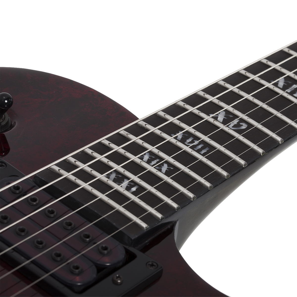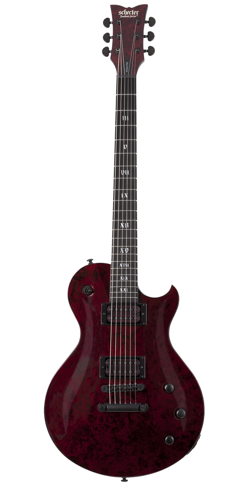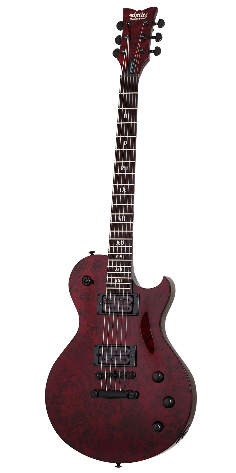 Pastilla del puente: Schecter USA Apocalypse-VI™.Pastilla del brazo: Schecter USA Apocalypse-VI™.