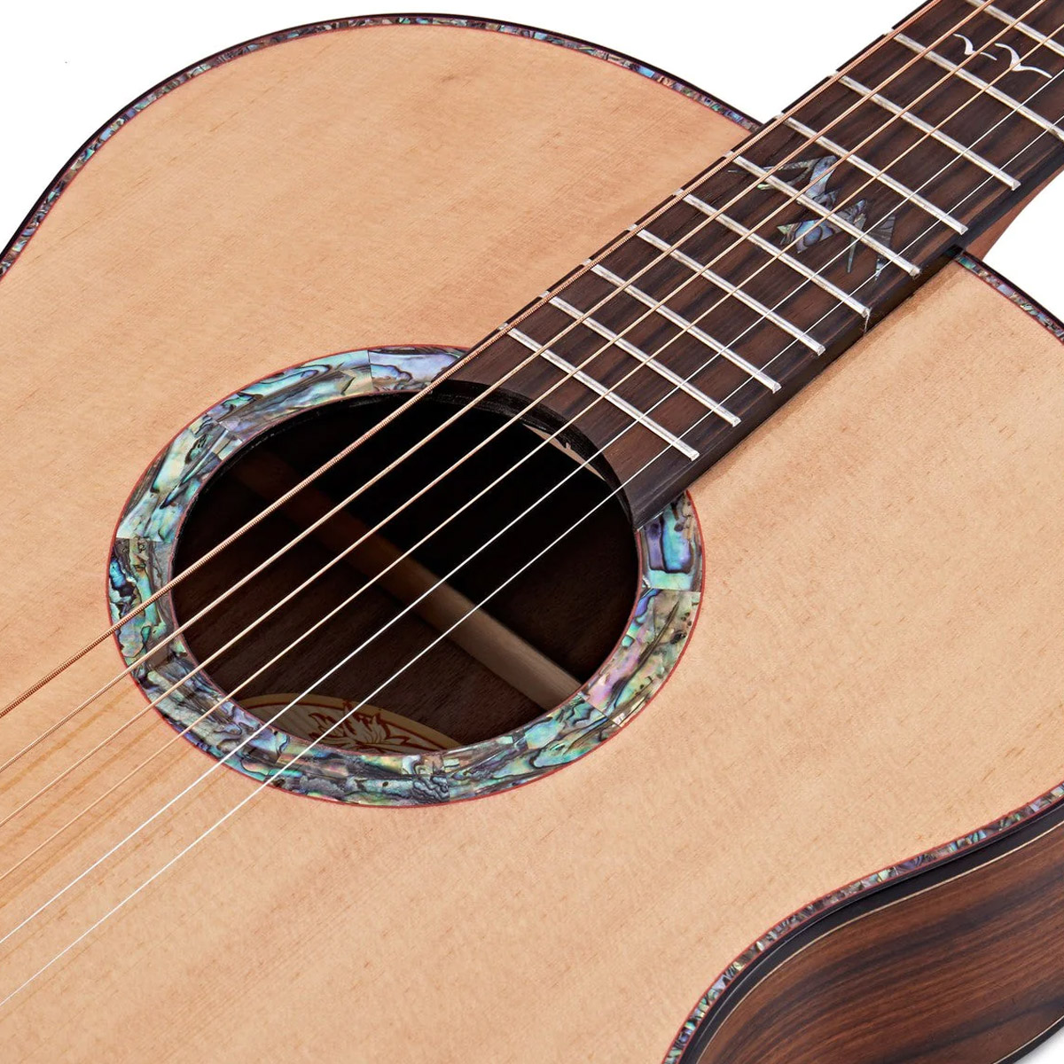 Purfling de abulón / highlight de padauk / unión de ébano.