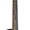 La guitarra S9V se realza con las incrustaciones de patrones de vid de madera exótica en el diapasón.