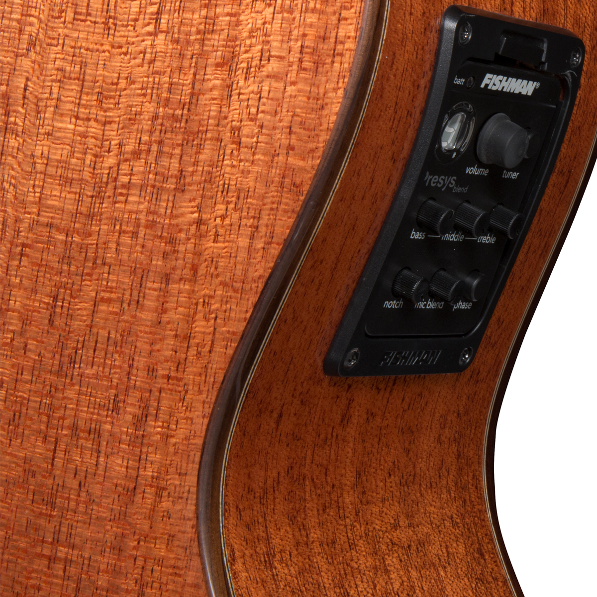 Controles: Volume, / EQ (bass, mid, treble / notch / micblend / phase).Pastillas: Under Saddle Transducer y micrófono interno.Sistema de preamplificación: Fishman Presys+ Blend EQ con micrófono y afinador integrados.