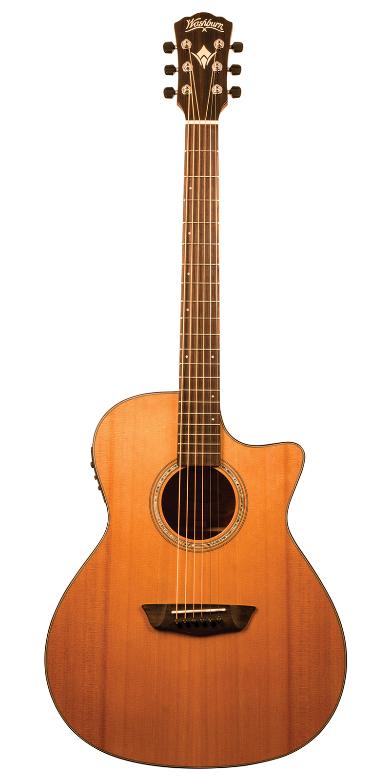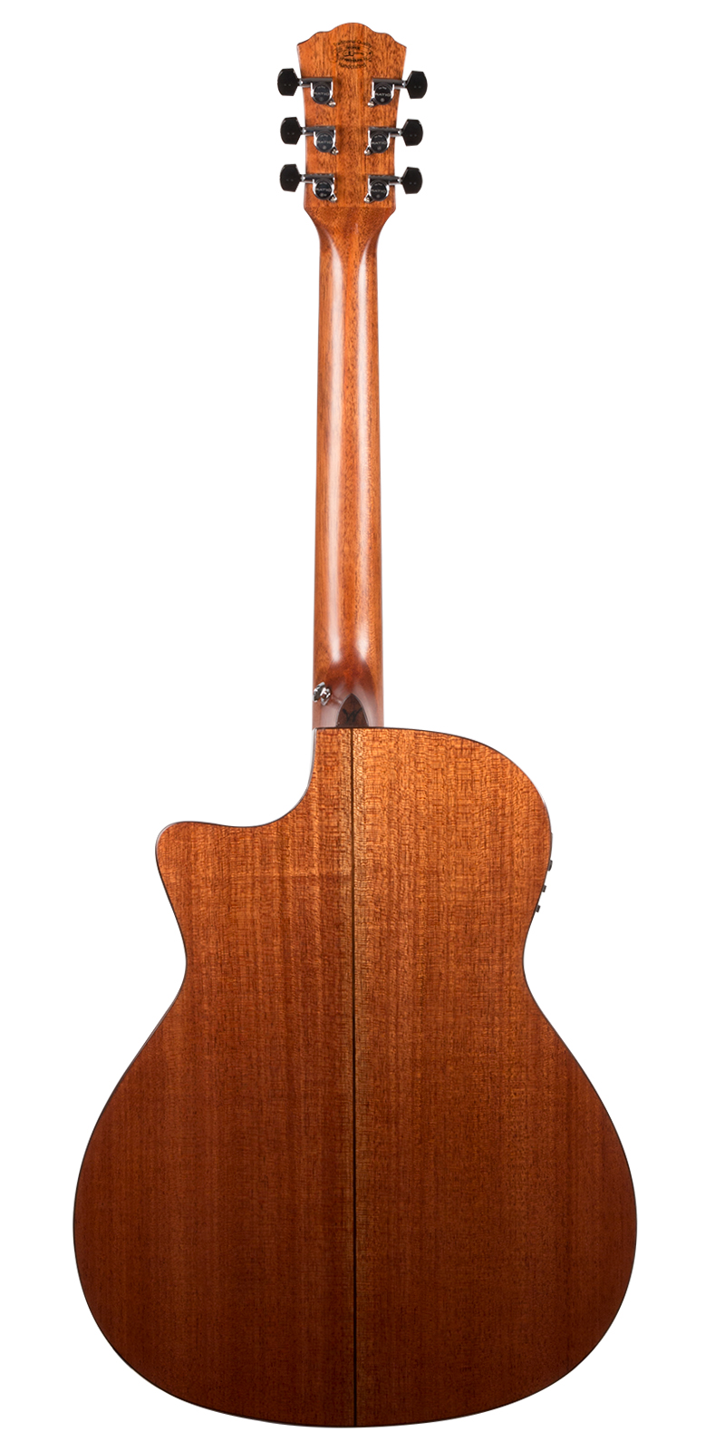 Cuerpo: Cedro rojo sólido occidental.Aros y fondo: Caoba sólida.Refuerzo: Cathedral Peaked Scalloped-X.Roseta: Abalone/Maple de 2 anillos.Tipo: Guitarra acústica.Forma: Grand Auditorium.Estilo: Cutaway.