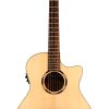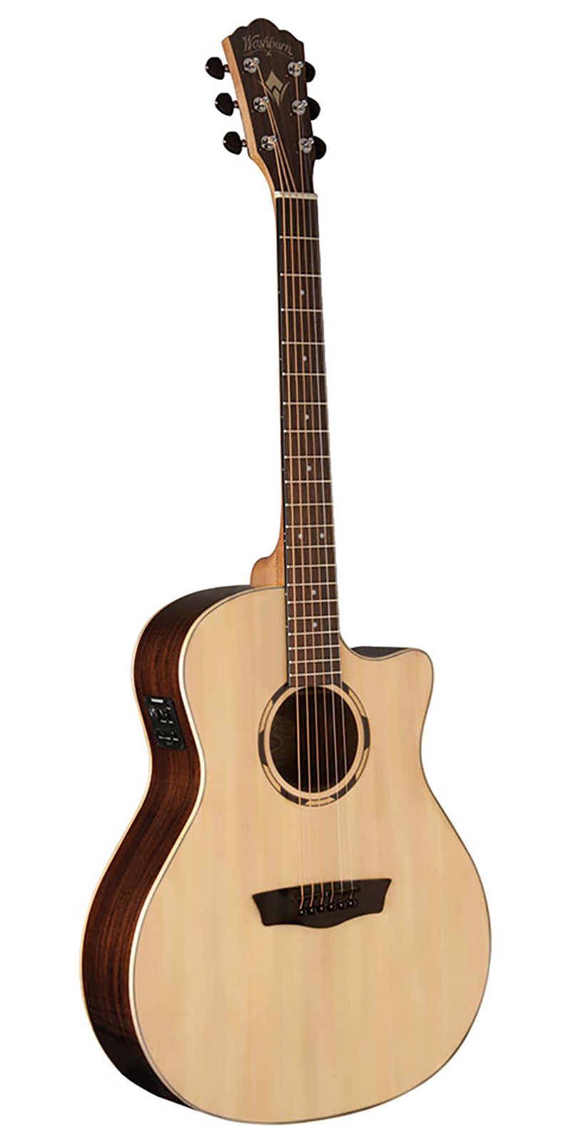 Cuerpo de abeto sitka sólido.Aros y fondo de Pau Ferro.Refuerzo Cathedral Peaked Scalloped-X.Roseta Washburn Parquet.Tipo: Guitarra acústica.Forma: Orquesta.Estilo: 6 cuerdas, cutaway.