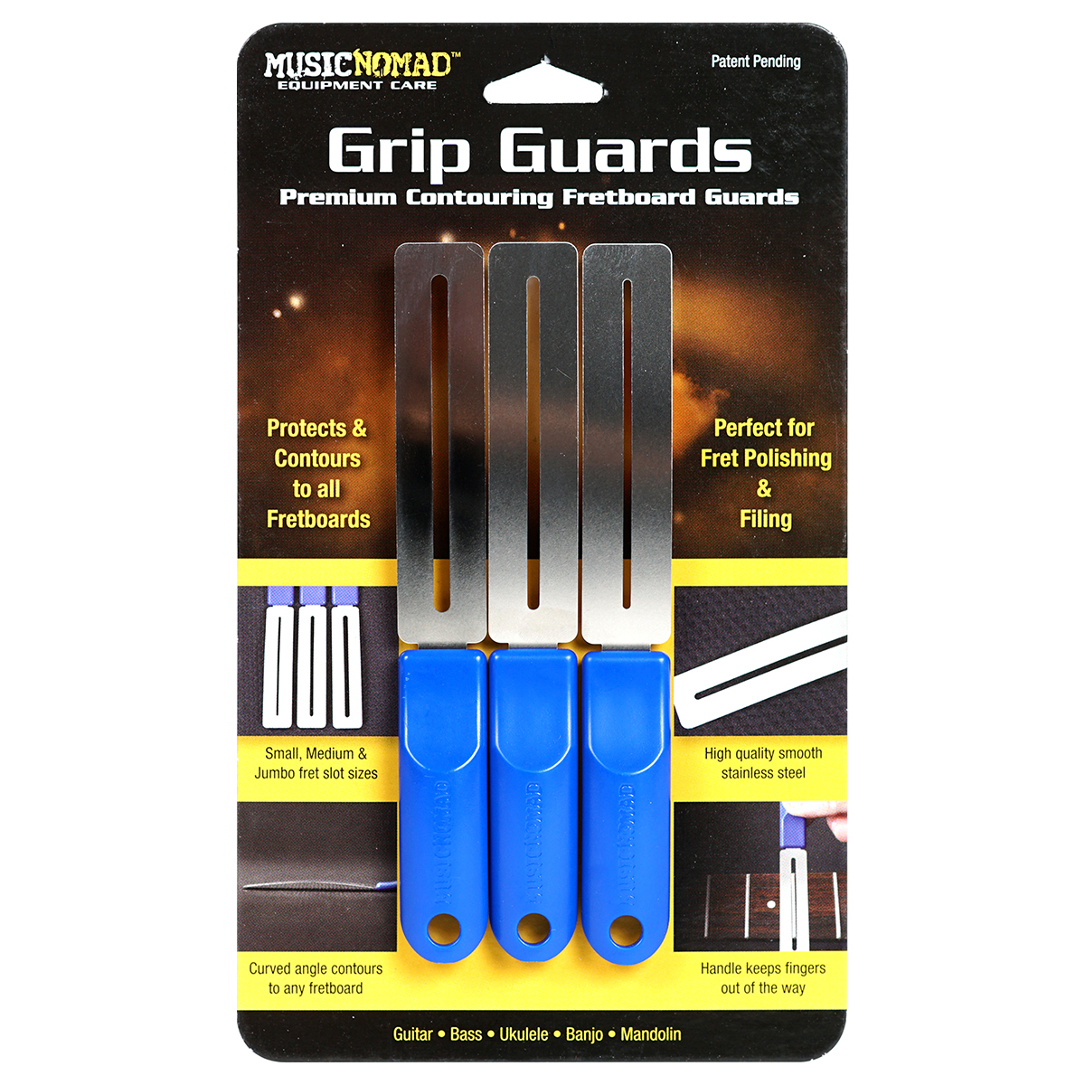 Set de protectores GRIP para trastes, consigue de forma rápida un gran pulido y otros trabajos de trastes, fabricados utilizando un proceso de alta precisión que produce un terminado muy suave en material de acero inoxidable de alta calidad, no magnético, resistente a la corrosión y al calor, contornos de ángulos curvos diseñados especialmente para todos los trastes, innovadora manija ergonómica, cuenta con el ancho ideal que te permite trabajar hacia arriba y hacia debajo de cualquier diapasón ya sea de guitarra, bajo o incluso ukelele.