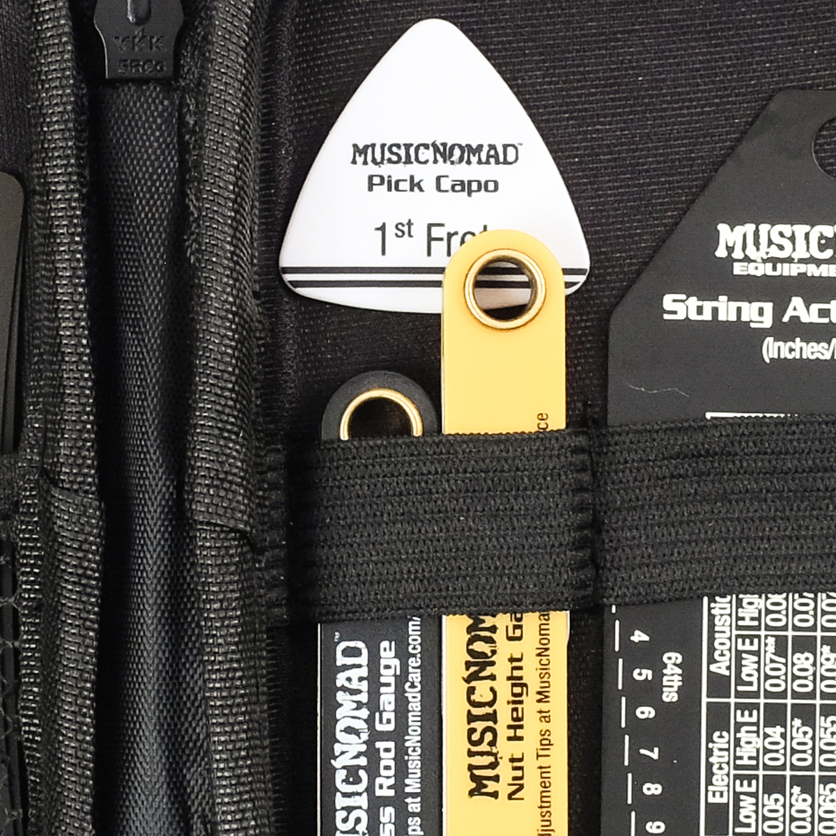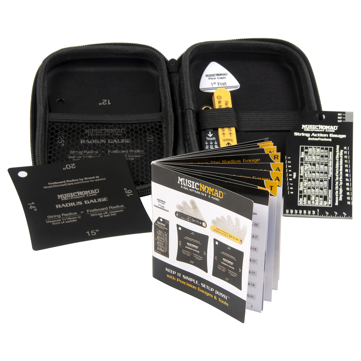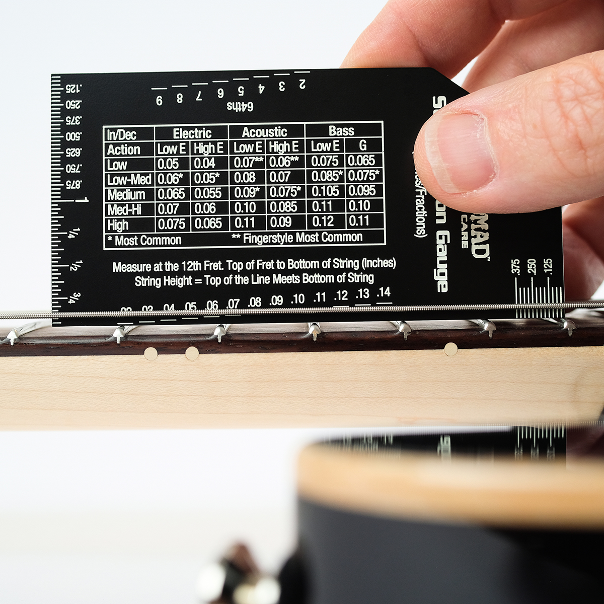Incluye las tres medidas de altura de cejuela más comunes (.016″, .018″, .020″) más tres tamaños adicionales (.012”, .014”, .022”) para adaptarse al deseo de una acción más baja o un ataque de púa más pesado. No hay aceite molesto y sucio en los calibres de espesores tradicionales.