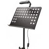 Soporte de lámpara individual, fácilmente acoplable a cualquier atril de partituras por medio de un dispositivo de sujeción ajustable. Se suministra con 2 metros de cable con interruptor y enchufe.