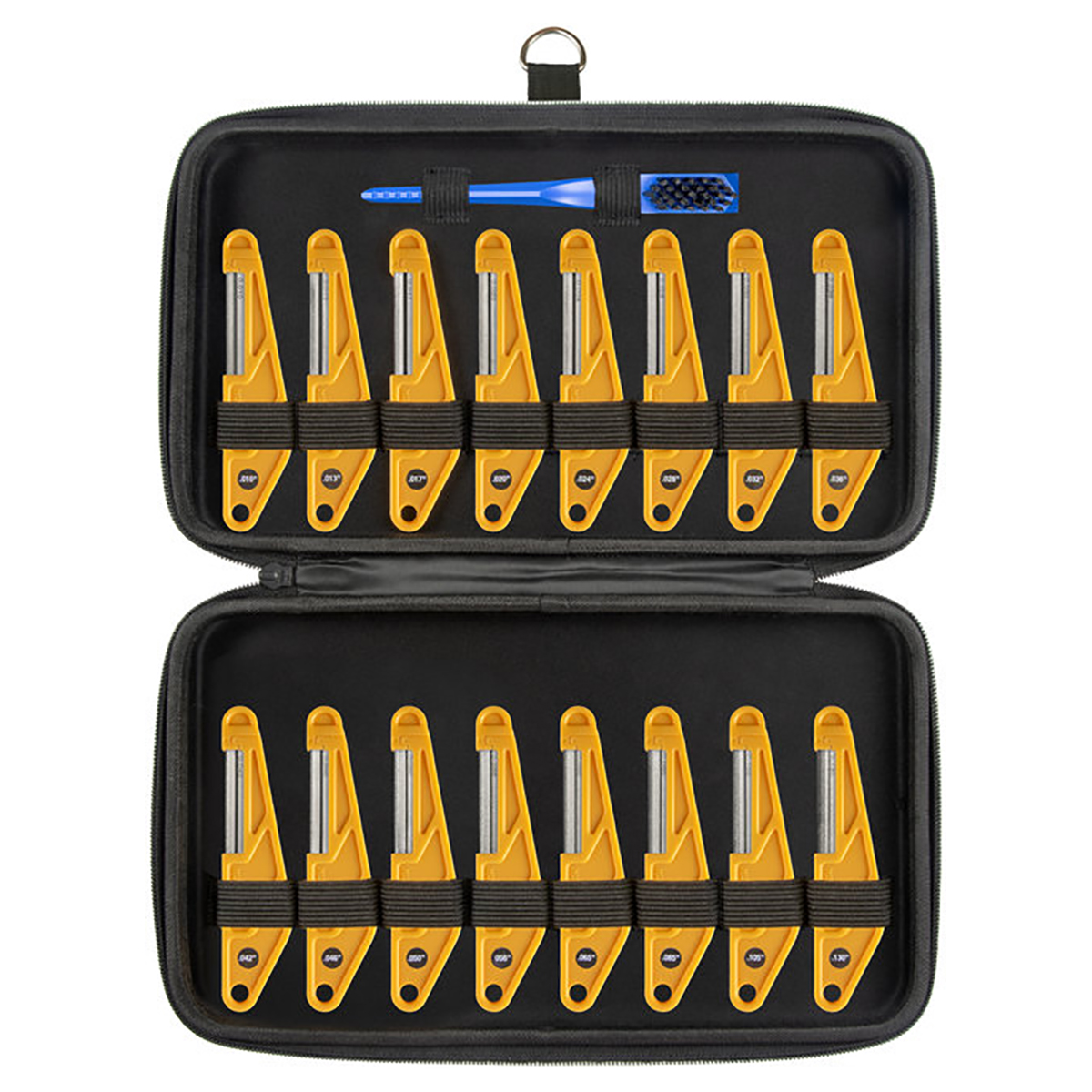 .010″, .013″, .017″, .020″, .024″, .028″, .032″, .036″, .042″, .046”, .050″, .056″, .065”, .085”, .105”, .130”