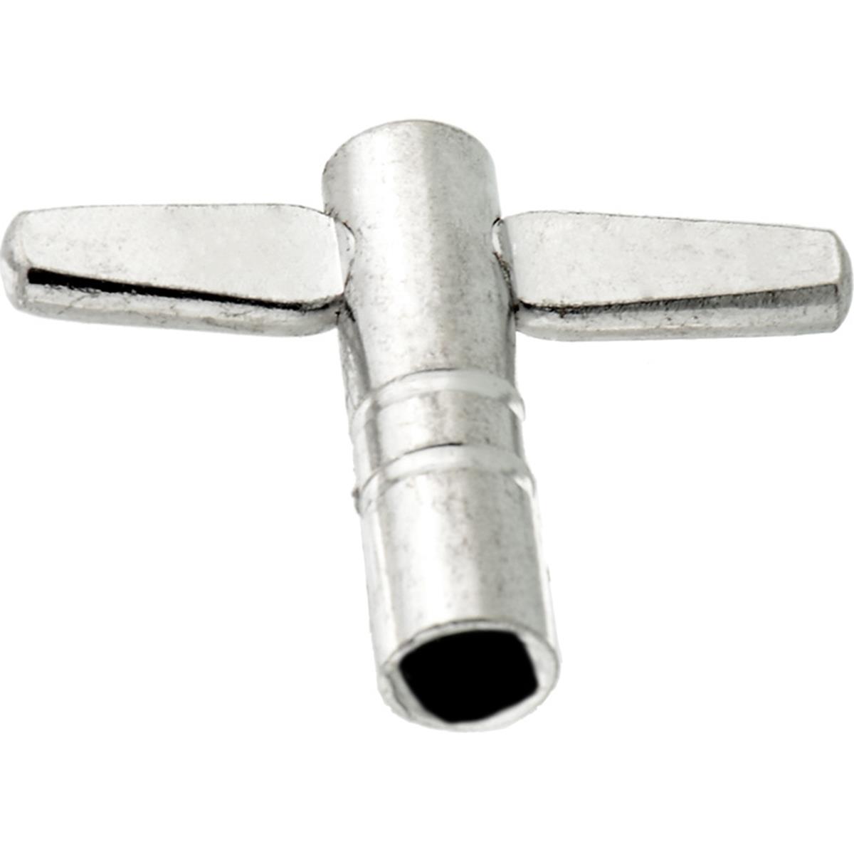 Llave de afinación para batería, metálica, terminado cromado, sencilla.