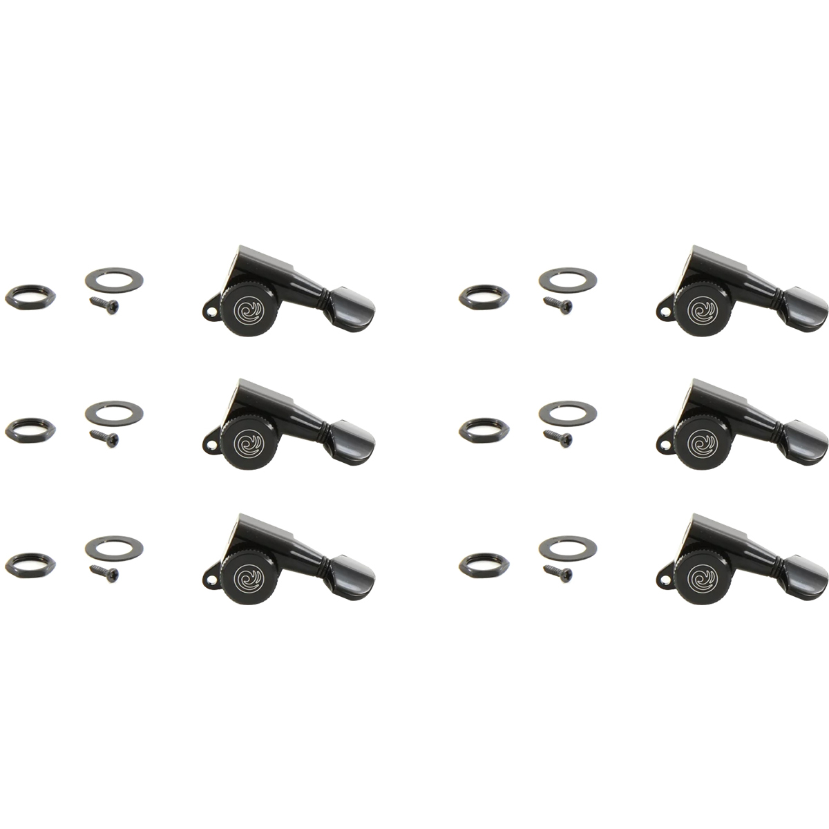Maquinaria de precisión con 6 afinadores que cortan automáticamente el exceso de cuerda, versión en color negro, formato de 6 en línea, abrazaderas individuales de cuerda que sujetan con seguridad la cuerda en la máquina de afinación evitando la necesidad de múltiples vueltas alrededor, excelente para trémolo y otras aplicaciones exigentes, proporción de engranaje precisa de 18: 1 para un ajuste suave y exacto con deslizamiento mínimo de la cuerda.