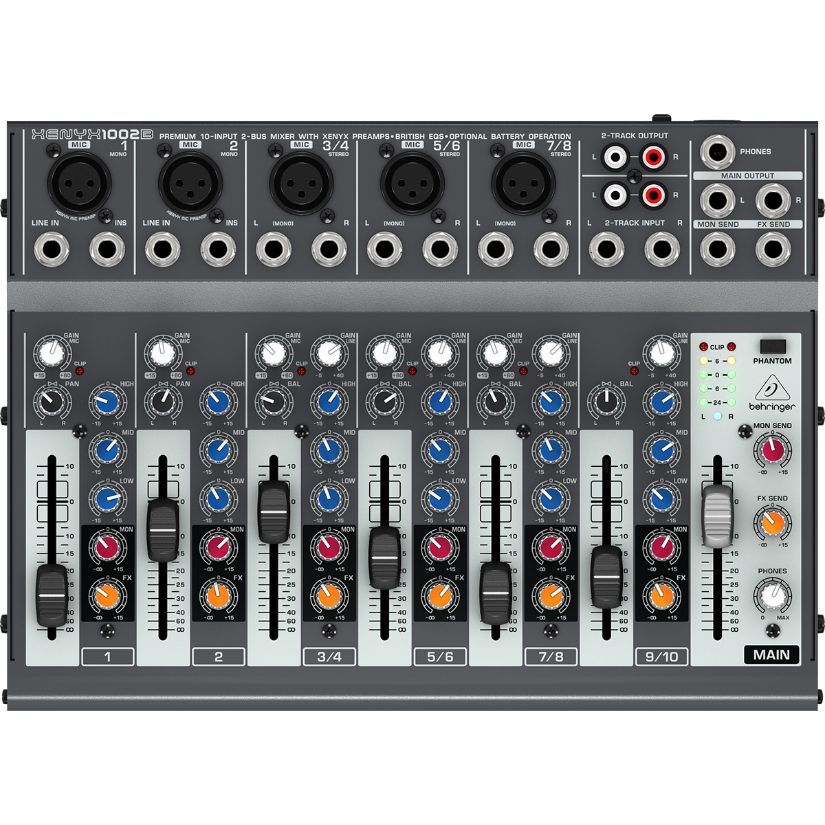 La mezcladora Xenyx 1002B representa un hito significativo en el desarrollo de la tecnología de mezcladoras. Está equipada con preamplificadores Xenyx que proporcionan un ancho de banda que se extiende desde por debajo de los 10 Hz hasta por encima de los 200 kHz y ofrecen un sonido transparente y cristalino que solo alguien que actualice sus micrófonos podría imaginar.