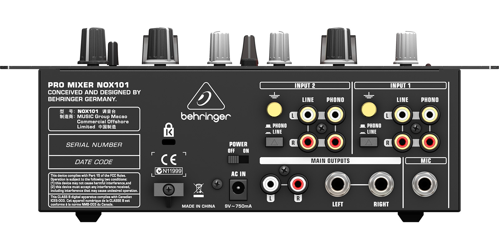 Mic in: 45 dB ganancia, TRS, electrónicamente balanceado.Phono in: 35 dB ganancia, RCA, desbalanceado.Line in: 0 dB ganancia, RCA, desbalanceado.