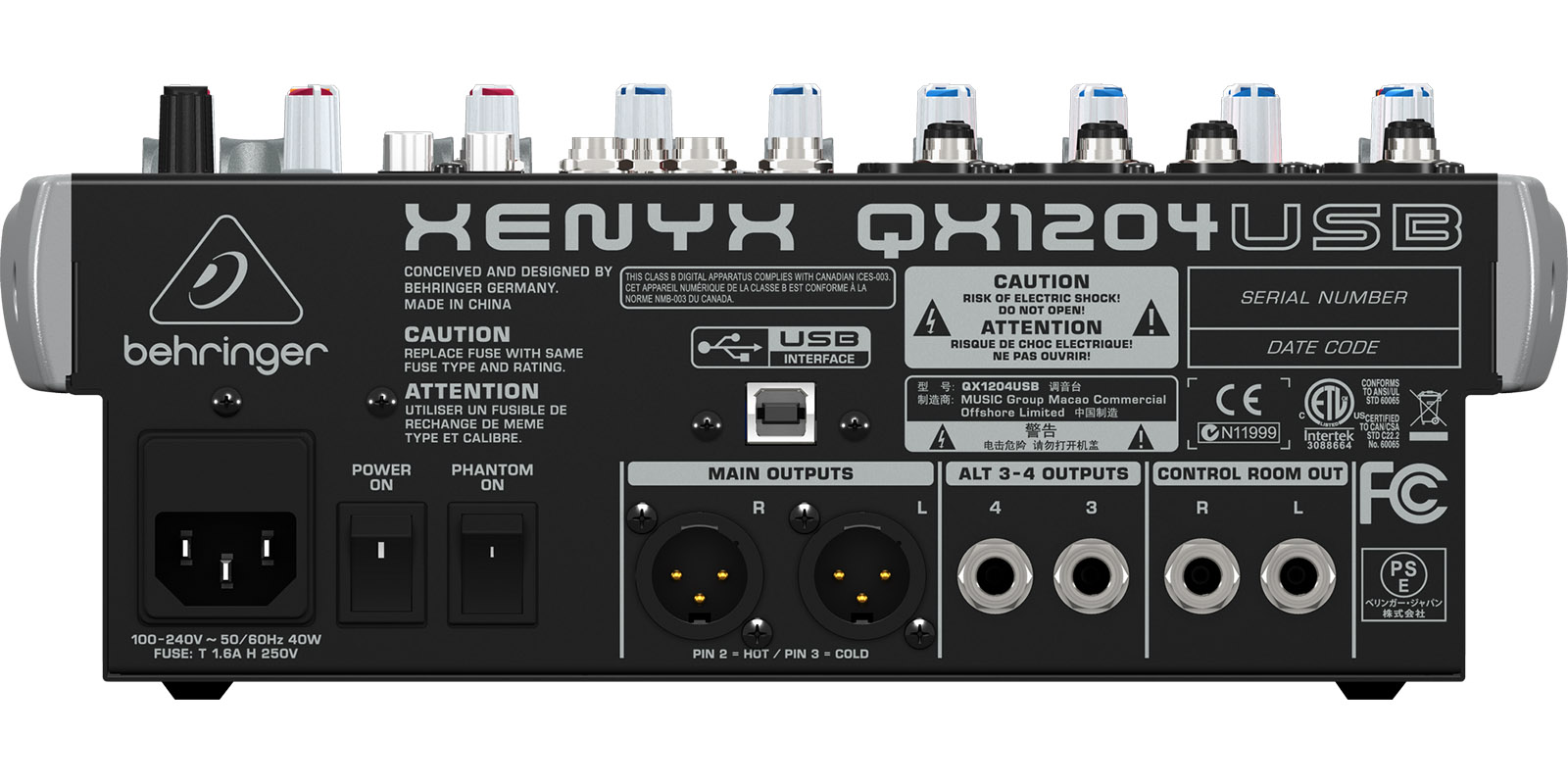 4 preamplificadores Xenyx.Tipo: conector XLR balanceado, circuito de entrada independiente.Mic E.I.N. (20 Hz – 20 KHz).@ 0 ohms resistencia fuente: -134 dB / 136dB medición A.@ 50 ohms resistencia fuente: -132 dB / 135 dB medición A.@ 150 ohms resistencia fuente: – 131 dB / 133 dB ´medición A.Respuesta de frecuencia (-1 dB): <10 Hz – 150 kHz (-1 dB).Respuesta de frecuencia (-3 dB): <10 Hz – 200 kHz (-3 dB).Rango de ganancia: +10 a +60 dB.Nivel de entrada máximo: +12 dBu @ +10 dB ganancia.Impedancia: 2 kohms balanceado.Relación señal a ruido: 108 dB / 110 dB medición A (0 dBu entrada @ +22 dB ganancia).Distorsión (THD+N): 0,005% / 0,004% medición A.Alimentación phantom: Conmutable, +48V.