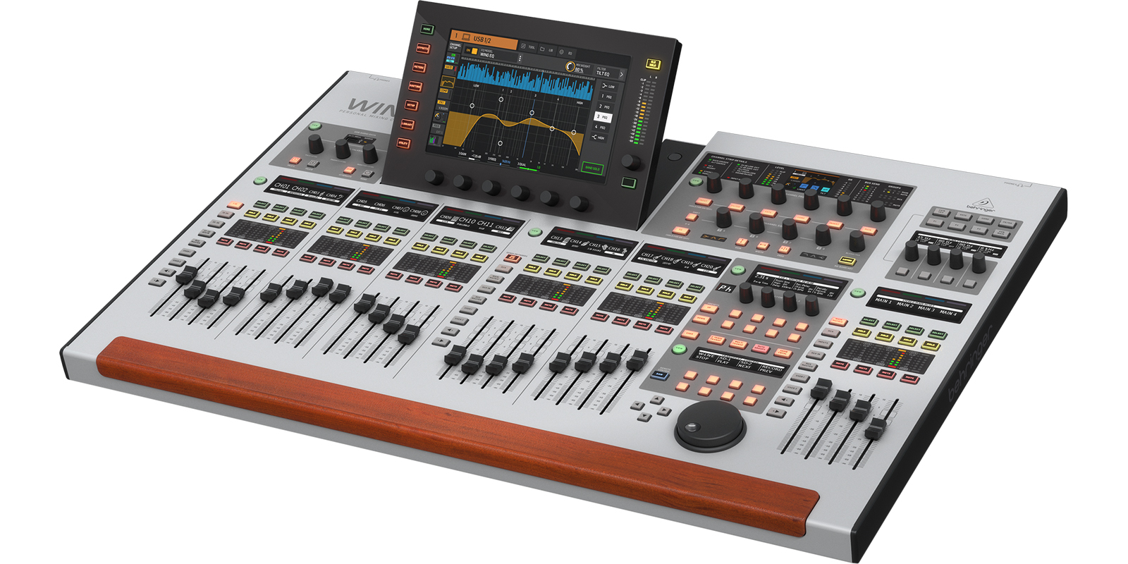 Pantalla principal: 10.1″ TFT LCD, 1280 x 800 px, táctil capacitiva.Pantalla principal giratoria, ajuste continuo: 15°- 60°.Pantalla LCD grupal de 4 canales con franja color RGB por canal: 320 x 48 monocromo.Pantalla de edición de canales: 2.4″ TFT LCD, 320 x 240 px.Medidor estéreo principal: 18 segmentos (-60 dB a clip).