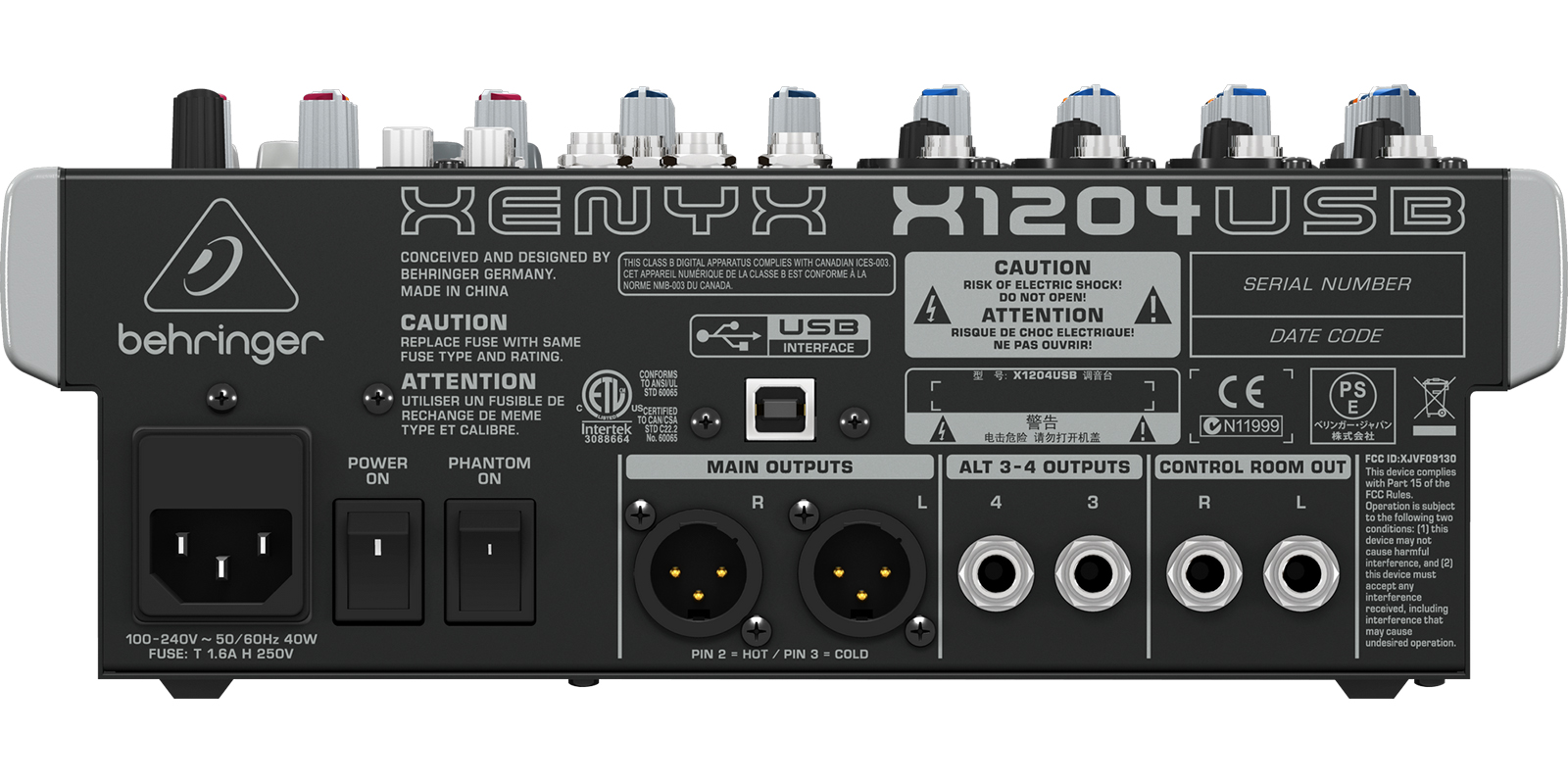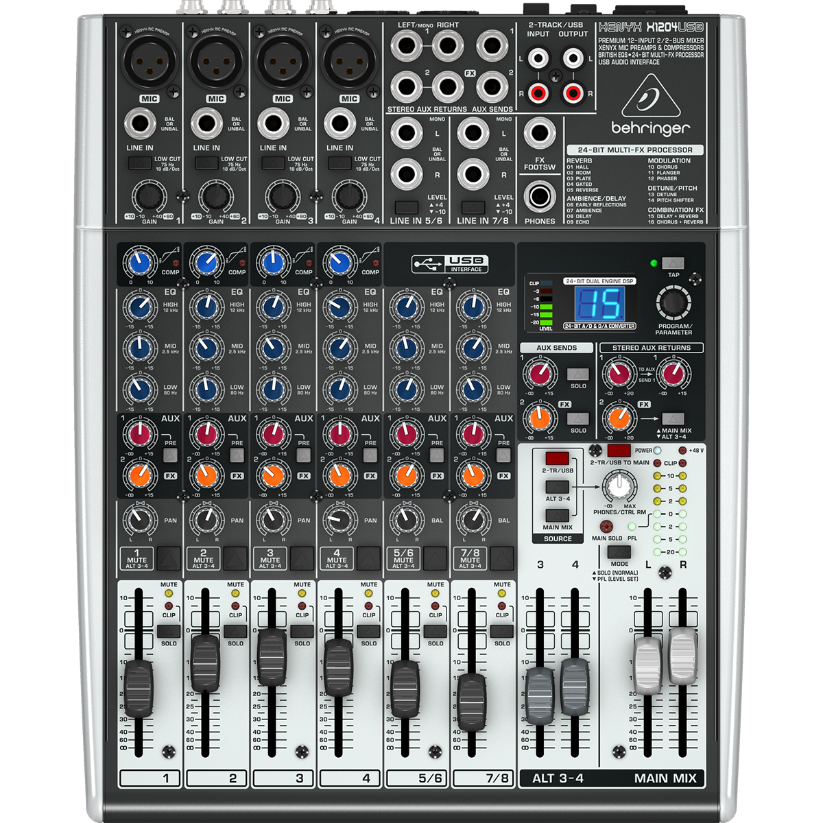 Entradas de micrófono (Preamps Xenyx)Tipo: XLR, electrónicamente balanceados, circuito de entrada discreta.Mic E.I.N. (20 Hz – 20 kHz).@ 0 ohms fuente de resistencia: -134 / 135.7 dB ponderado A.@ 50 ohms fuente de resistencia: -131 dB / 133.3 dB ponderado A.@ 150 ohms fuente de resistencia: -129 dB / 130.5 dB ponderado A.Respuesta de frecuencia (-1 dB): <10 Hz – 150 kHz.Respuesta de frecuencia (-3 dB): <10 Hz – 200 kHz.Rango de ganancia: +10 a +60 dB.Nivel de entrada máximo: +12 dBu @ +10 dB ganancia.Impedancia: Aproximadamente 2.6 kohms balanceado.Relación señal a ruido: 110 dB / 112 dB ponderado A (0 dBu In @ +22 dB ganancia).Distorsión (THD+N): 0.005% / 0.004% ponderado A.