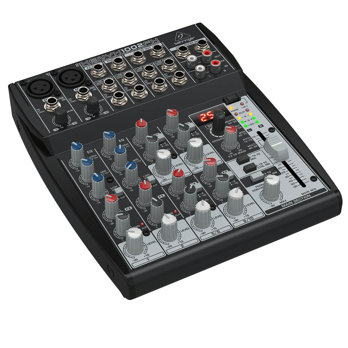 El mezclador analógico XENYX 1002SFX cuenta con 10 entradas para transmisión, podcasting o aplicaciones en vivo, preamplificadores de micrófono XENYX con alimentación fantasma de 48 V. La serie XENYX ”S” se puede conectar a cualquier computadora o dispositivo móvil, También se puede utilizar como un submezclador versátil para alimentar dispositivos de audio habilitados para red con varias otras señales de audio. Dos canales mono con EQ y Low Cut, más 4 canales estéreo, una entrada de transmisión RCA estéreo y una entrada USB estéreo un total de 14 señales de audio para transmisión, monitoreo a través de auriculares o salidas TRS y procesador Klark Teknik FX con cien preajustes. El 1002SFX presenta controles de nivel, panorama/balance y envío de efectos en todos los canales y permite modelar el sonido con precisión para cualquier fuente de entrada. Los canales mono tienen controles de ganancia adicionales y ecualizador de 3 bandas con corte de graves conmutable, mientras que los canales de nivel de línea estéreo ofrecen un refuerzo de 12 dB conmutable. El control de envío de efectos por canal le permite usar los programas de efectos estéreo internos y/o conectar cualquier procesador de efectos externo de su elección. Finalmente, un fader principal de 60 mm asegura un control de volumen extremadamente suave de su mezcla de salida.