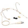 Micrófono de condensador profesional de diadema para una reproducción de voz natural y precisa, ideal como micrófono principal y de apoyo para grabaciones de estudio, presentaciones en vivo, lugares de culto, fitness y teatros, excelente opción para locutores, presentadores, conferencistas, cantantes, músicos, actores e intérpretes que requieren micrófonos manos libres, respuesta de frecuencia optimizada especialmente para transmisores de bolsillo, patrón polar omnidireccional para una calidad sonora cálida y equilibrada con bajo efecto de proximidad, construcción metálica robusta, confiable, de bajo perfil y liviana para actuaciones con micrófono oculto, conector de salida mini XLR de 3 pines chapado en oro para una máxima integridad de la señal, ganchos integrados para las orejas para un ajuste cómodo y casi invisible, longitud del boom ajustable para un posicionamiento flexible, cable integrado de 1.2 metros con conector mini XLR, paravientos discreto y clip para cable incluidos.