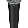 Micrófono cardioide dinámico con switch On/Off, presencia suave de frecuencia media para una excelente reproducción de la voz, respuesta de frecuencia ultra plana para un sonido brillante y transparente, salida de señal extremadamente alta, característica cardioide que minimiza el ruido de fondo y la retroalimentación, filtro esférico integrado antiviento y antipop, sistema shock-mount para reducir el ruido de manejo, conector XLR de 3 pines para mayor integridad de la señal, incluye adaptador de soporte para micrófono y estuche protector.
