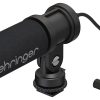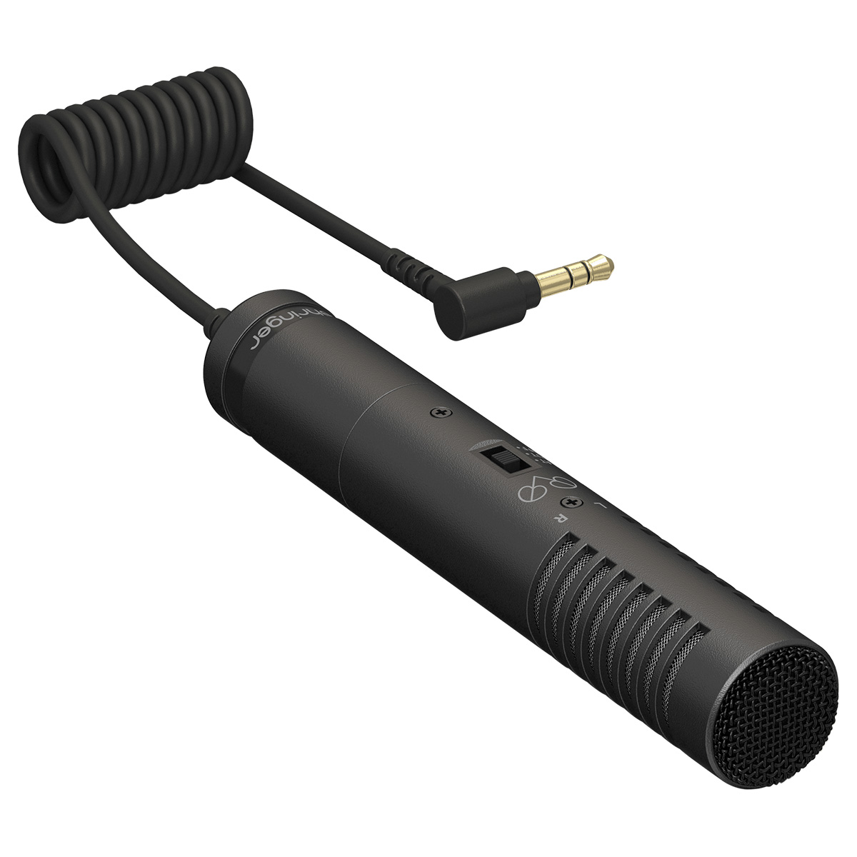 Micrófono shotgun de condensador X-Y de doble cápsula para aplicaciones de videocámara, calidad de transmisión con respuesta de audio superior para DSLR, cámaras de video y la mayoría de las grabadoras de audio, excelente opción para periodistas profesionales, podcasters, vloggers y producción video/film, par combinado de cápsulas de condensador en configuración X-Y con patrón de captación unidireccional para imágenes precisas, práctico switch On/Off para un consumo eficiente de energía con atenuación de baja frecuencia seleccionable, alimentación enchufable versátil o batería LR44 (no incluida) con circuito de cambio automático de fuente de alimentación, cable de 0.6 metros con conector angulado TRS de 3.5 mm (1/8”), construcción ligera ultra resistente con cuerpo de metal fundido a presión, clip de micrófono especialmente diseñado con adaptador de zapata para cámara, paravientos de espuma y bolsa de transporte protectora incluidos.
