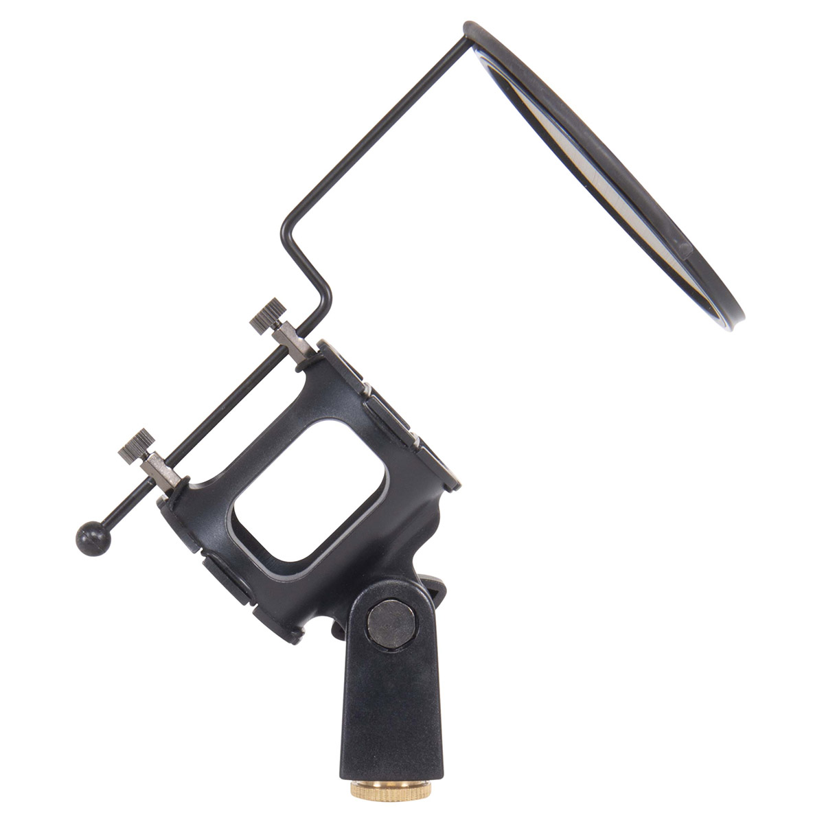 Shockmount, filtro antipop y bolsa de transporte acolchada.