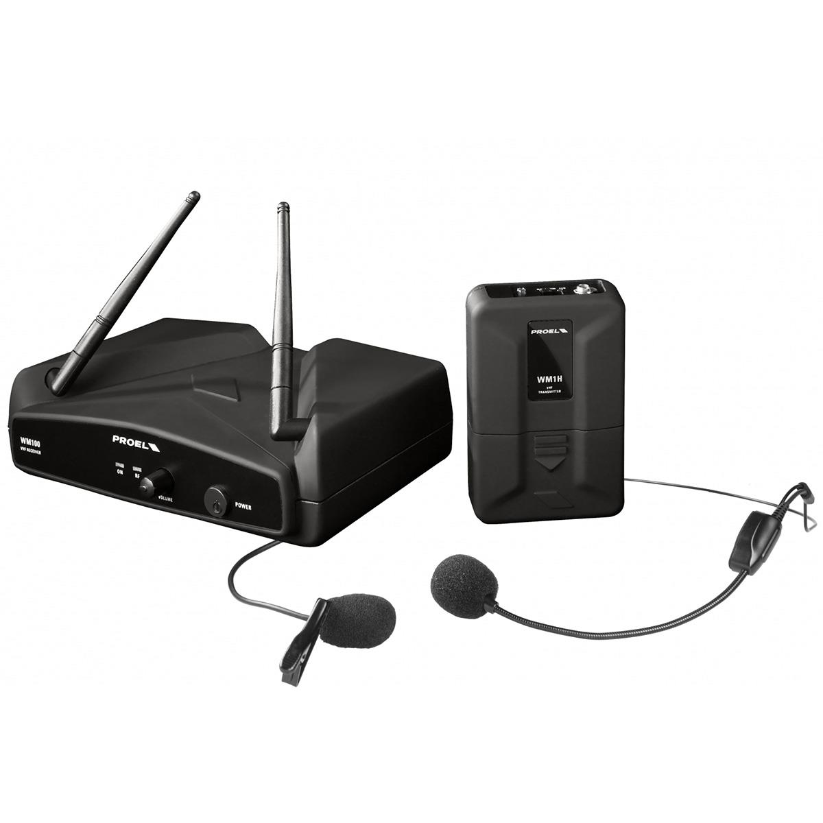 Sistema de microfonía inalámbrica con audífono de frecuencia fija, rango de frecuencia: 175 – 216 Mhz, rango de hasta 30 metros, respuesta de frecuencia: 50 Hz- 15 kHz, rango dinámico: 95 dB, audífono de condensador con cápsula cardioide,receptor de escritorio de bajo perfil con dos antenas plegables, hasta 5 sistemas utilizables en la misma ubicación, estuche de almacenamiento de ABS.