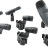 1 micrófono e602-II dinámico cardioide para bombo.4 micrófonos e604 dinámicos cardioides para toms y tarola.2 micrófonos e614 súper cardioides de condensador para contratiempos / overheads.Estuche transporte de plástico resistente con espuma interior.