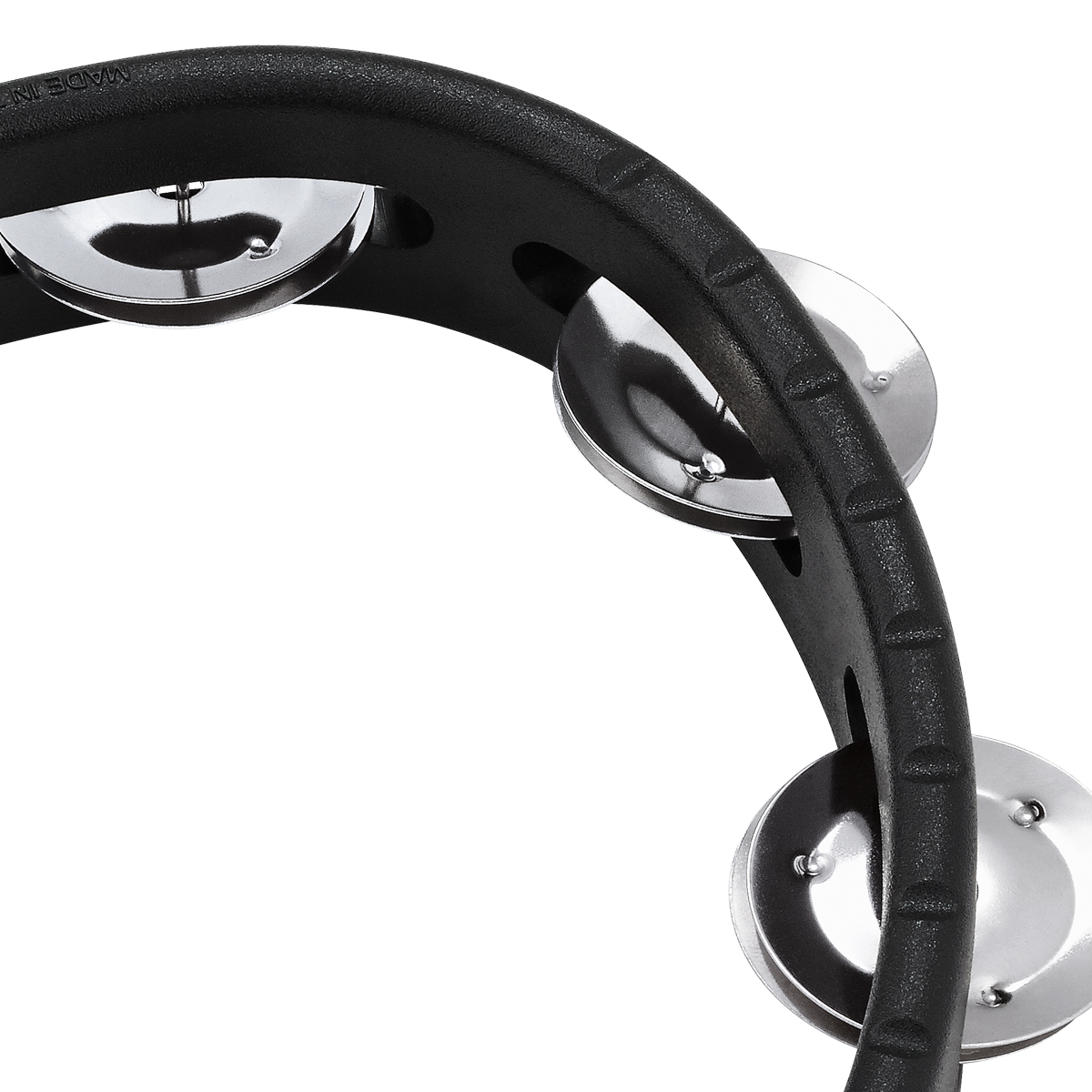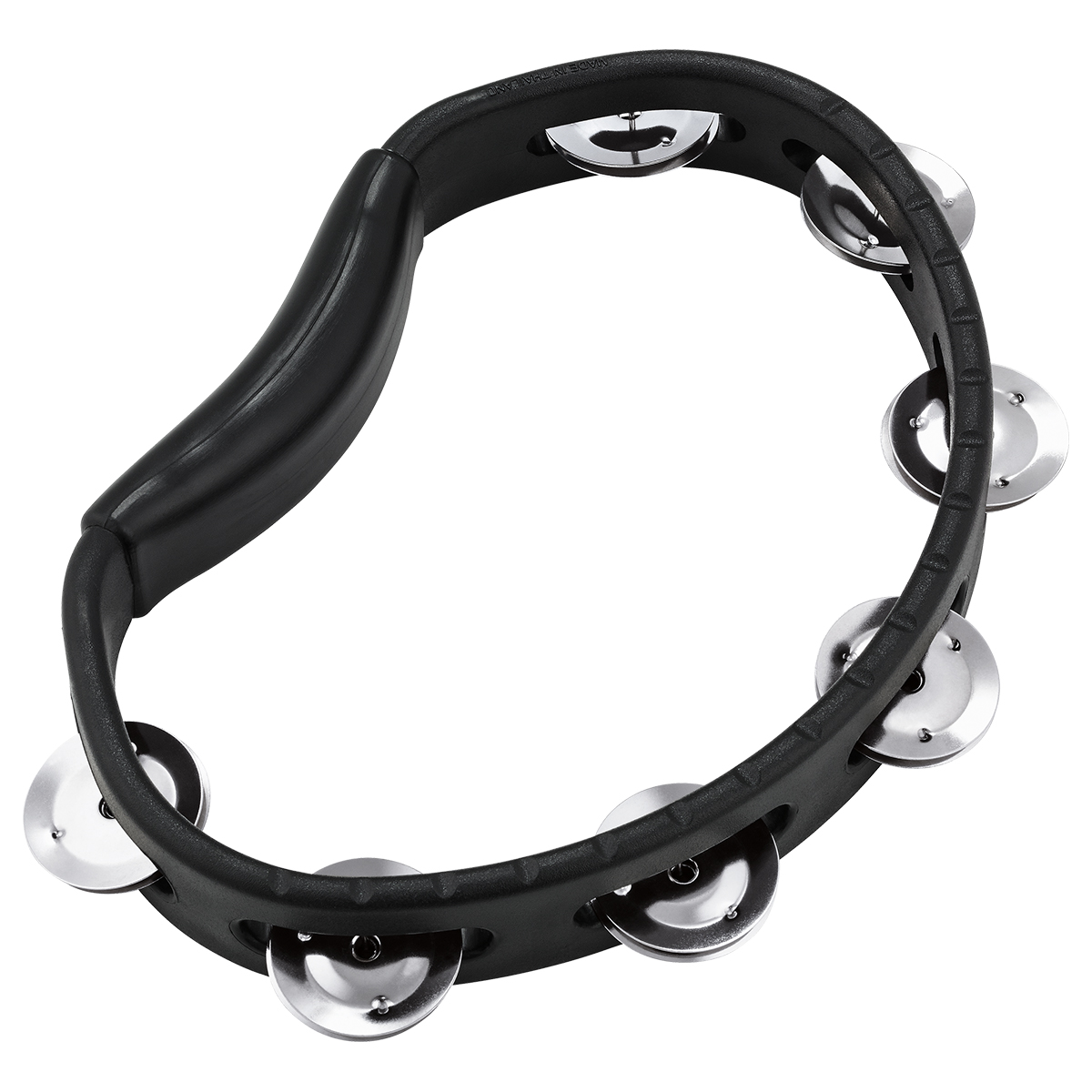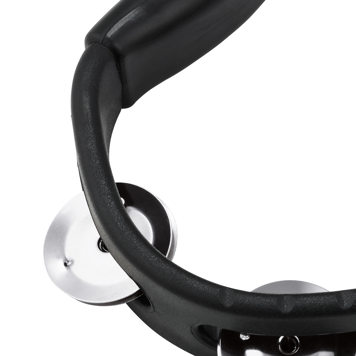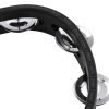 Pandero de ABS, empuñadura ergonómica para mayor comodidad al tocar, superficie de toque estilo güiro, sonido penetrante de crótalos, una hilera de crótalos, crótalos de acero inoxidable, color negro.