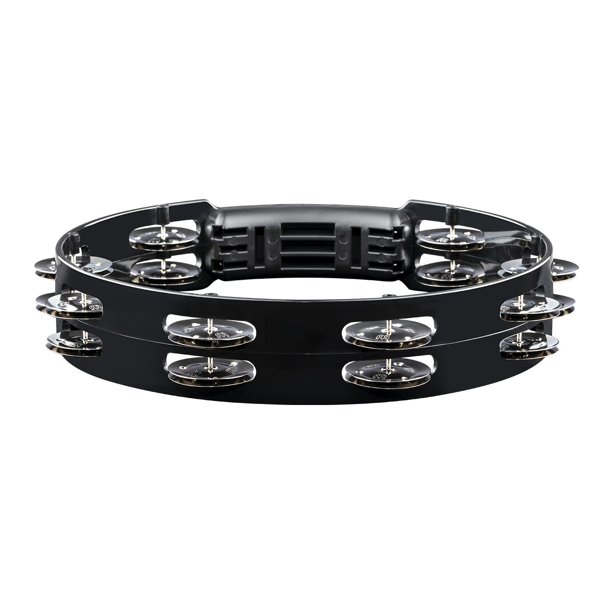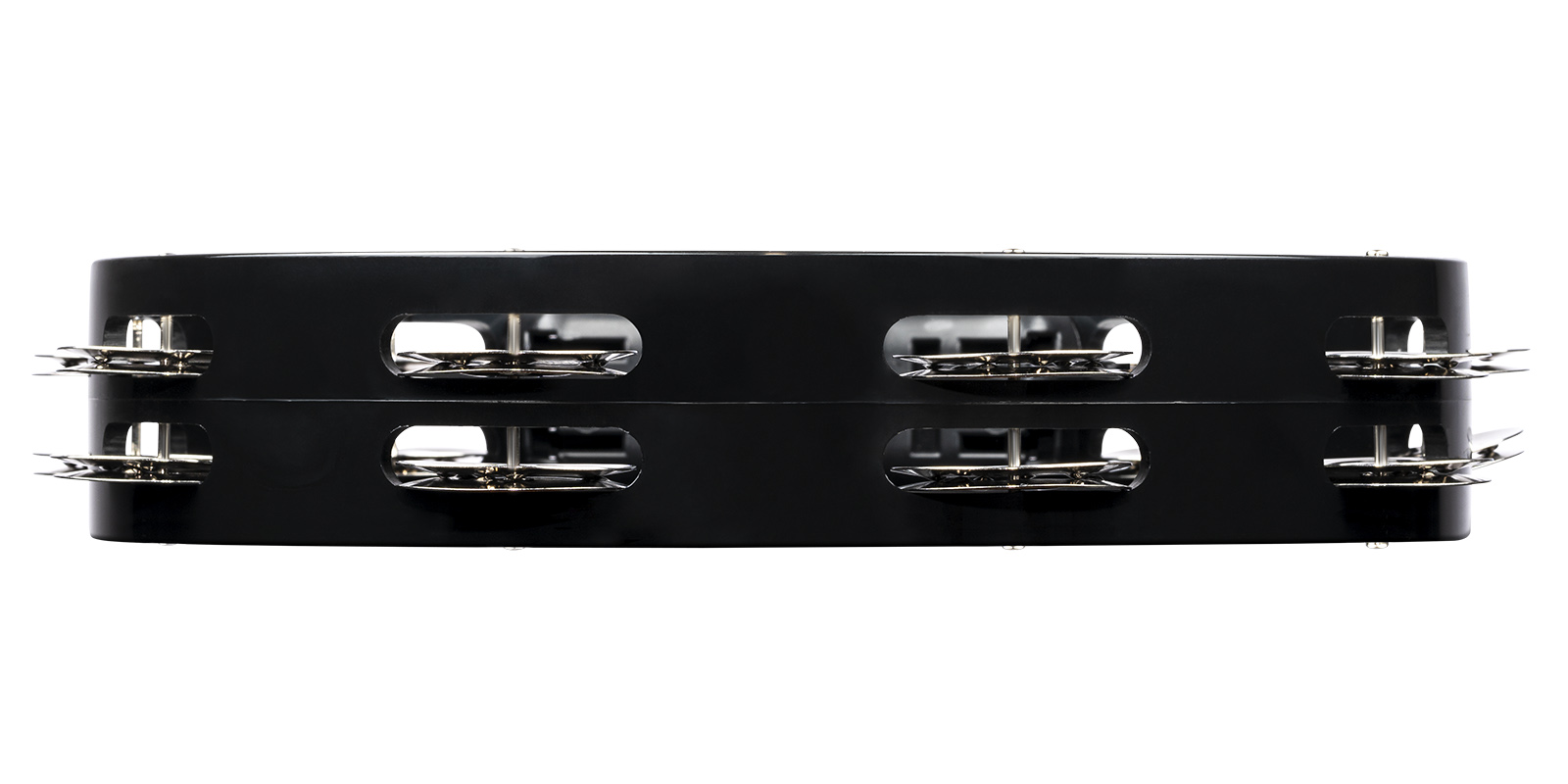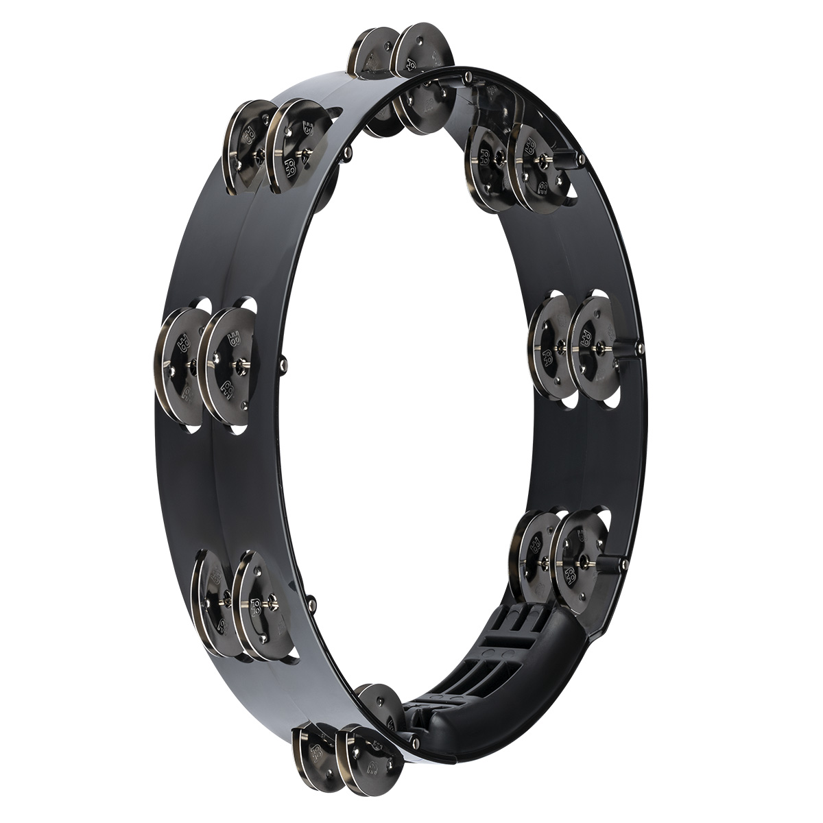 Pandero serie Headliner, 2 hileras de crótalos de acero inoxidable, agarre extra ancho, brillo y sonido cortante, marco durable de ABS, 2 hileras de crótalos de acero inoxidable, diámetro: 10” pulgadas, color negro.